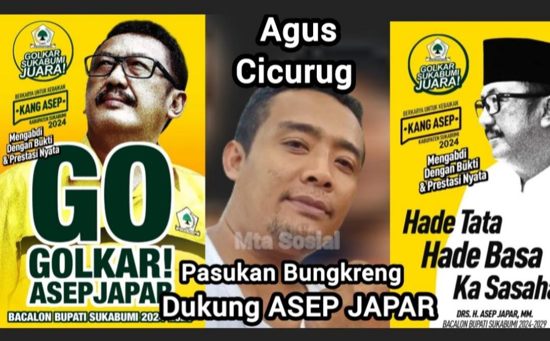 Sukabumi – “Jangan lupa Pilkada Sukabumi tahun 2024, Mari bahagiakan kabogoh dan mantan kabogoh, Saya Agus bersama keluarga besar Pasukang Bungkreng sangat mendukung dan pastinya akan memilih dan sosialisasikan Pak Asep Japar jadi Bupati Sukabumi, kita harus berjuang bersama untuk kemenangan Asep Japar di Pilkada tahun 2024 ini,” kata Agus Pasukann Bungkreng Cicurug Sukabumi kepada matasosial.com, Mingu 07 Juli 2024.