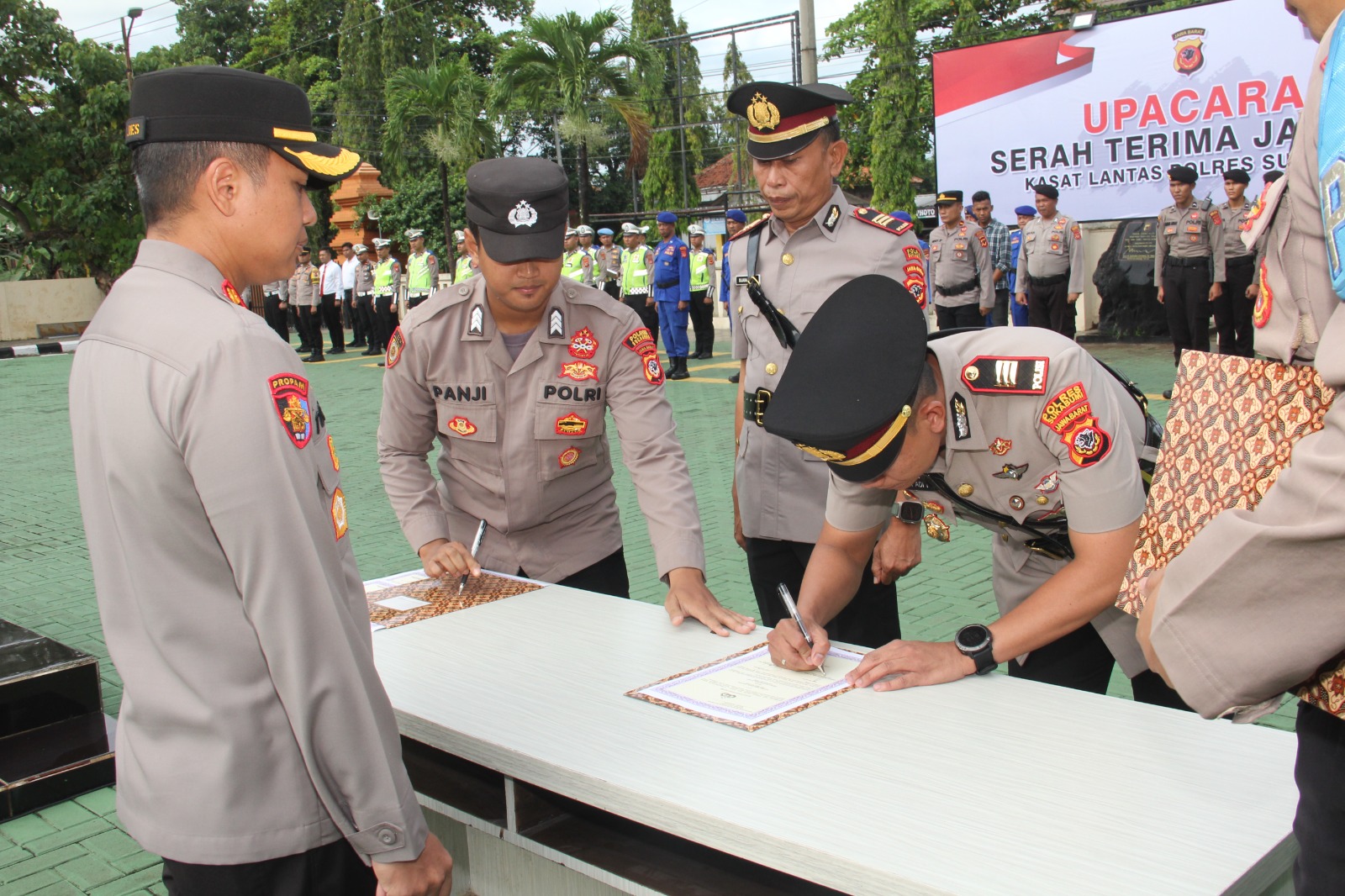 Pada kesempatan tersebut, terjadi pergantian pada jabatan Kasat Lantas Polres Sukabumi. AKP Sunjana Awin Umar, S.M. yang sebelumnya menjabat sebagai Kasat Lantas Polres Sukabumi, kini dipindahkan sebagai Kasubbagfaskon Baglog Polres Sukabumi Kota. Sementara itu, AKP Fiekry Adi Perdana, S.I.Kom., yang sebelumnya menjabat sebagai Kapolsek Cirebon Selatan, diangkat dalam jabatan baru sebagai Kasat Lantas Polres Sukabumi.