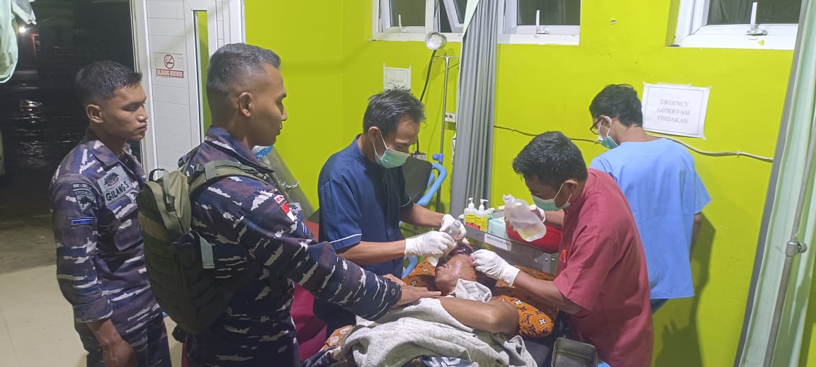TNI AL, Simeulue,- Pangkalan TNI AL Simeulue dalam hal ini Posal Kampung Air mengevakuasi satu orang Anak Buah Kapal (ABK) KM. Arafah Baru 01 yang mengalami kecelakaan kerja saat melaut di Perairan Simeulue Cut, dengan Korban bernama Nasriadi (39 tahun) mengalami luka serius dibagian pelipis mata kiri akibat terkena besi poli katrol saat sedang bekerja diatas kapal, Rabu (16/4/2025).