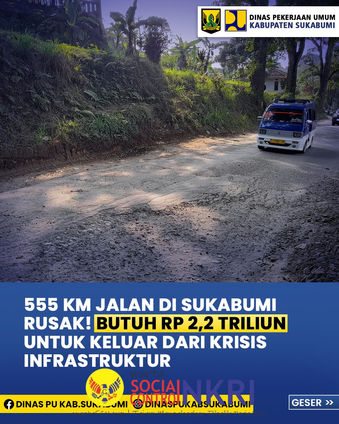 Kepala Dinas Pekerjaan Umum Kabupaten Sukabumi, Dede Rukaya, mengungkapkan bahwa dari total 1.424 kilometer jalan kabupaten, baru sekitar 60,58% yang berada dalam kondisi baik dan sedang. Sisanya, 39,02% masuk kategori rusak berat dan rusak.