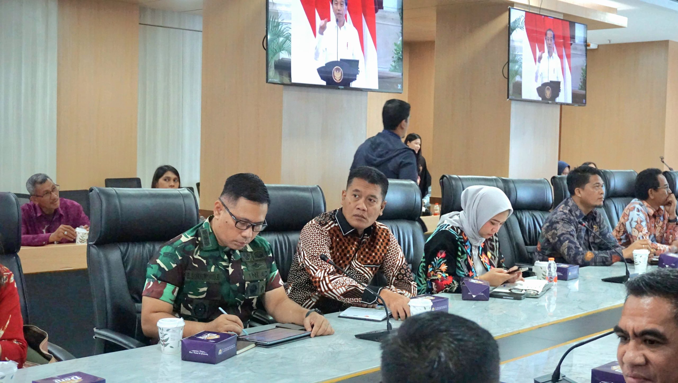 TNI AL, Belawan,- Komandan Pangkalan Utama TNI Angkatan Laut I (Danlantamal I) Brigjen TNI (Mar) Jasiman Purba, S.E., CHRMP., diwakili Asrena Danlantamal I Kolonel Laut (S) Nanda Cahyono, S.E., mengikuti Rapat Koordinasi Nasional (Rakornas) Pengendalian Inflasi Tahun 2024 melalui Vicon, bertempat di Ruang Rapat Lantai 2 Kantor Gubernur Sumut, Jumat (14/6/2024).