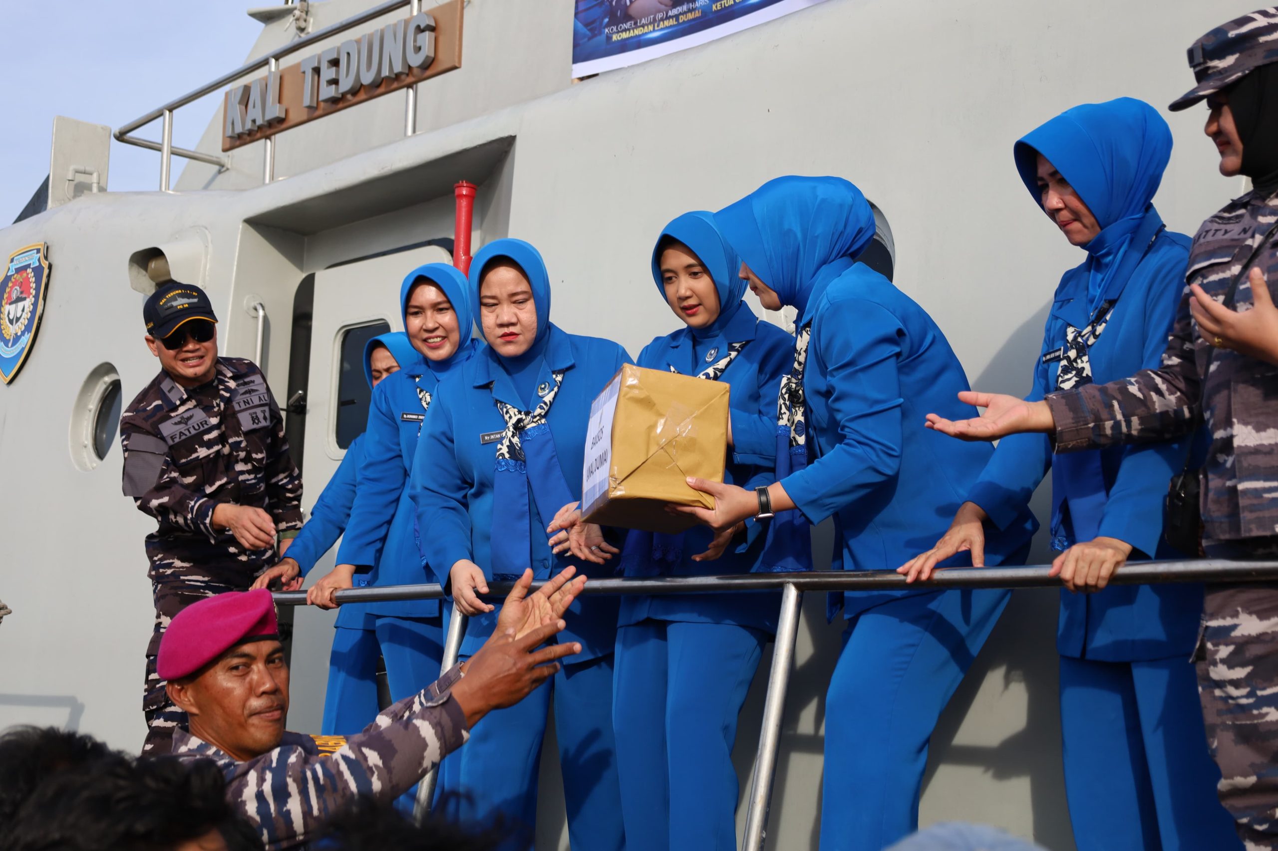 Kegiatan bakti sosial ini diisi dengan pembagian sembako yang berisi beras, sarung, dan berbagai bahan makanan. Pembagian sembako dilakukan menggunakan Kapal Angkatan Laut (KAL) Tedung l-1-37.