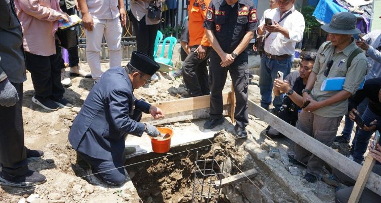 Bupati Sukabumi H Asep Japar meletakkan batu pertama pembangunan rumah panggung bagi