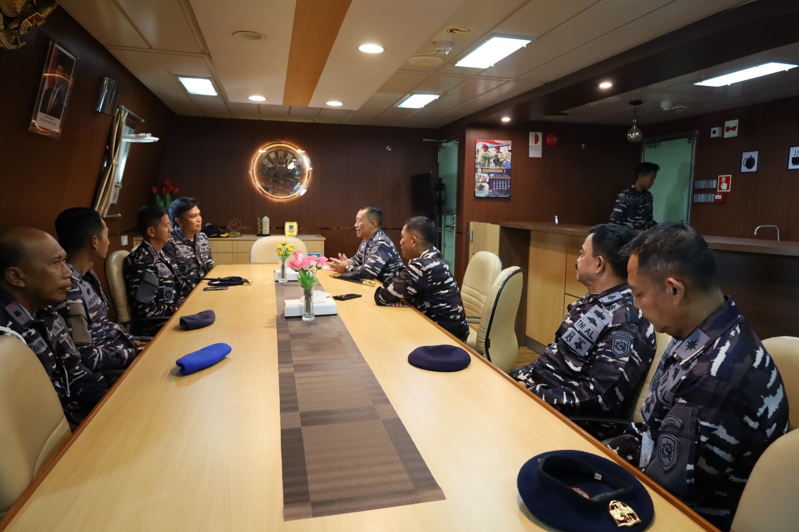 TNI AL, Dumai,- Komandan Pangkalan TNI Angkatan Laut (Danlanal) Dumai Kolonel Laut (P) Abdul Haris bersama dengan Perwira Staf dan Prajurit Lanal Dumai menyambut kedatangan KRI Bontang-907 di Dermaga C Pelindo Dumai, Jalan Datuk Laksamana Kota Dumai, Selasa (4/3/2025).