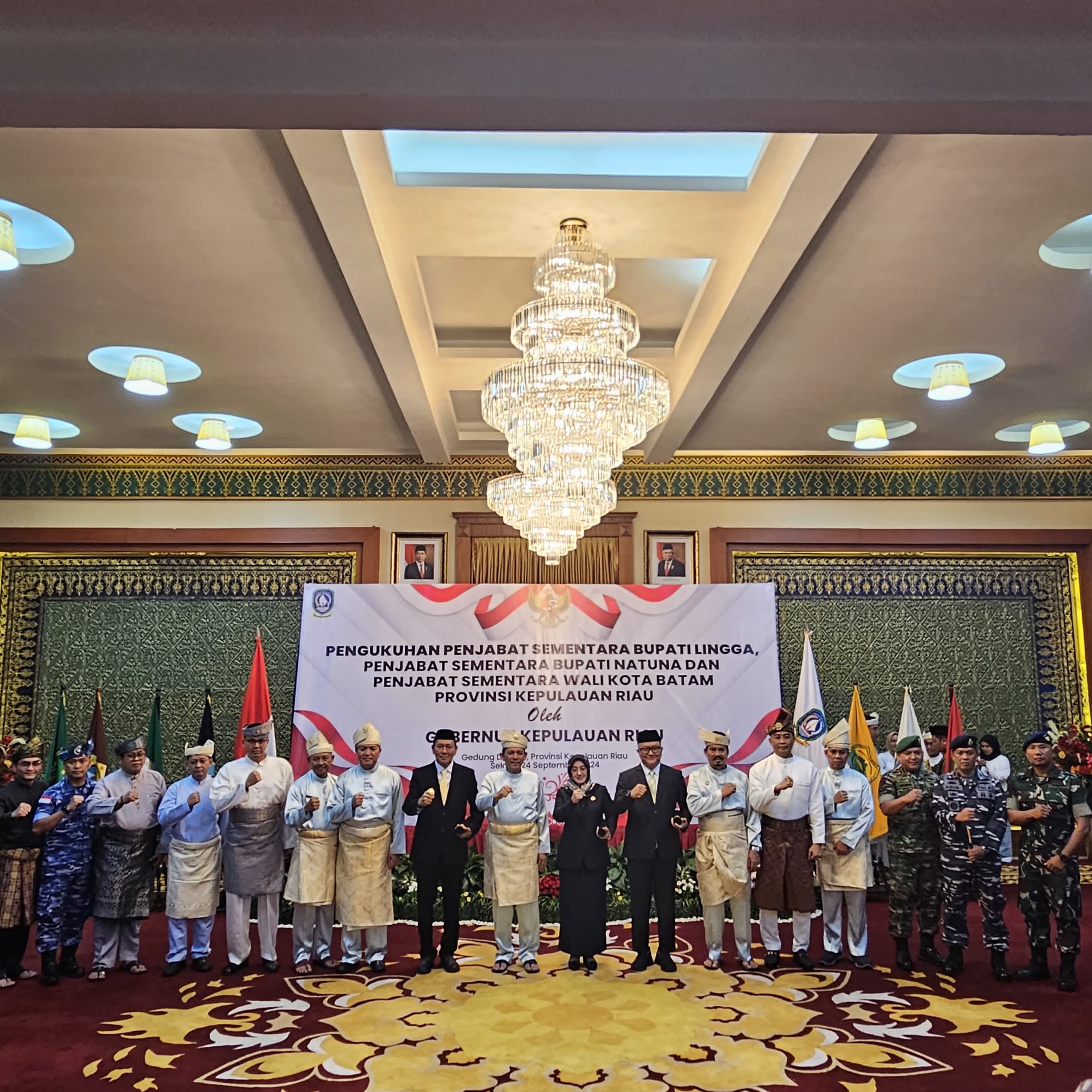 Gubernur Kepri mengukuhkan tiga Penjabat Sementara (Pjs) Kepala Daerah yang ada di Provinsi Kepri. Pjs itu ditugaskan untuk mengisi posisi Bupati dan Walikota yang kosong, karena kepala daerah maju dalam Pilkada 2024 di Kepri. Adapun Pjs yang dikukuhkan tersebut yakni Kepala Dinas Pendidikan (Kadsidik) Kepri Andi Agung sebagai Pjs. Walikota Batam, Kadis Perkim Kepri Said Nursyahdu sebagai Pjs. Bupati Lingga, dan Kepala DP2KH Kepri Rika Azmi sebagai Pjs. Bupati Natuna. Pengukuhan ini berdasarkan surat Keputusan Menteri Dalam Negeri Nomor 100.2.1.3-3801 Tahun 2024 tentang Penunjukan Penjabat Sementara (Pjs) Bupati dan PJs Wali Kota di Provinsi Kepri.
