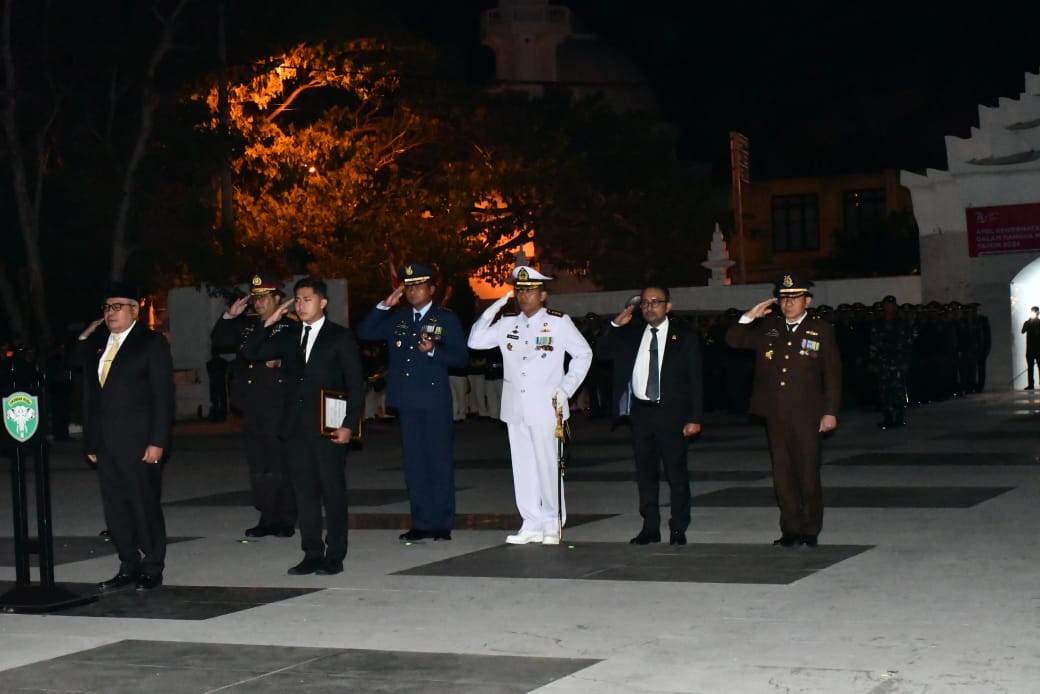 Danlanal Sabang dan Unsur Forkopimda Aceh, juga peserta Apel Kehormatan dan Renungan Suci (AKRS) memanjatkan doa untuk arwah para pahlawan serta untuk kebaikan bangsa Indonesia sebagaimana tema HUT Kemerdekaan Indonesia Ke-79 kali ini, “Nusantara Baru, Indonesia Maju”.
