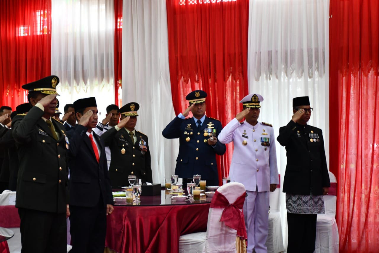 TNI AL, Sabang,- Komandan Lanal Sabang (Danlanal Sabang) Kolonel Laut (P) Gita Muharam, M.Sc., dan Ketua Jalasenastri Cabang 3 Korcab I DJA I Ny. Tika Gita Muharam beserta seluruh Unsur Forkopimda Provinsi Aceh ikut menghadiri dan menyaksikan secara Virtual Detik-Detik Proklamasi Kemerdekaan Republik Indonesia Ke-79 Tahun 2024 yang dilaksanakan di Ibu Kota Nusantara (IKN) dan dipimpin langsung oleh Presiden Republik Indonesia Ir. H. Joko Widodo dengan tema “Nusantara Baru Indonesia Maju”, bertempat di Resto Pendopo Gubernur Aceh, Kota Banda Aceh, Sabtu (17/08/2024).