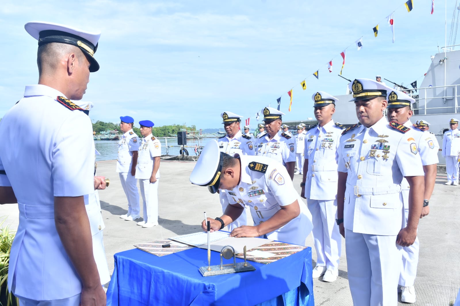 TNI AL, Sibolga,- Komandan Pangkalan TNI AL (Danlanal) Sibolga Letkol Laut (P) Robiyanto, S.H., M.Tr. Hanla., memimpin Upacara Serah Terima Jabatan (Sertijab) Komandan Detasemen Polisi Militer Angkatan Laut (Dandenpomal), Komandan Kapal Angkatan Laut (Dankal) Sarudik I-2 -18, Komandan Pos Angkatan Laut (Danposal) Barus, serta Komandan Pos Angkatan Laut (Danposal) Natal yang berlangsung di Pelabuhan Sambas Pelindo Kota Sibolga, Rabu (17/4/2024).