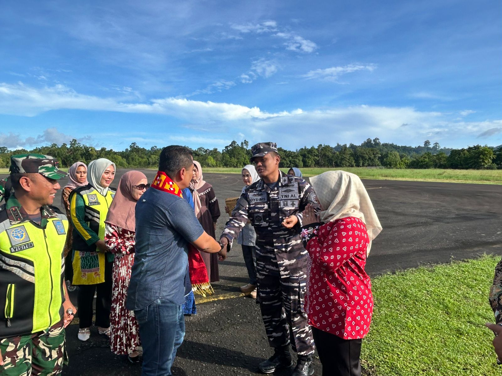 TNI AL, Simeulue,- Komandan Pangkalan TNI AL Simeulue Letkol Laut (P) Oyu Mulia Sukmana, S.T., M.T., M.Tr.Opsla., didampingi Ketua Jalasenastri Cabang 8 Korcab I DJA I Ny. Meylina Oyu Mulia, menghadiri acara Penyambutan Danrem 012/Teuku Umar Kolonel Inf Benny Rahadian, S.E., M.Han., beserta istri di Bandar Udara Lasikin, Kecamatan Teupah Tengah, Kabupaten Simeulue, Kamis (28/11/2024).