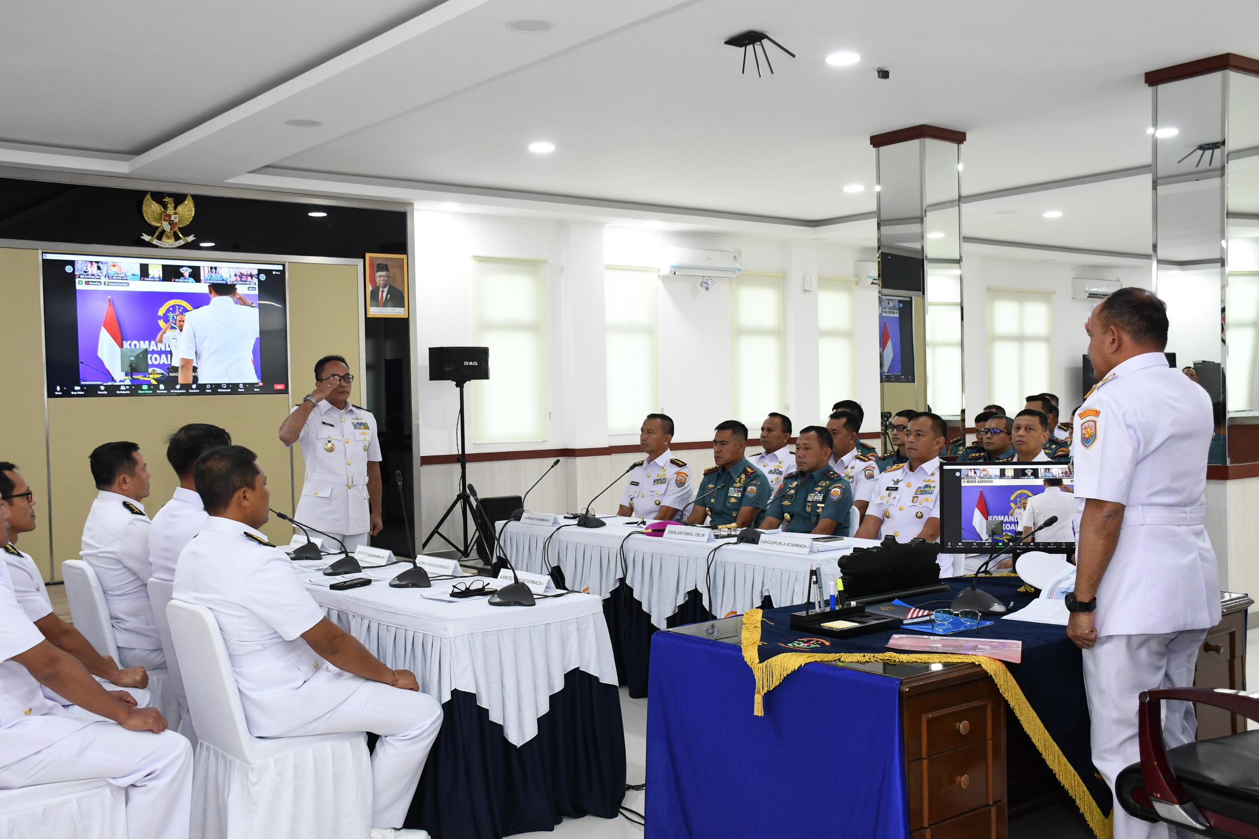 TNI AL, Belawan,- Komandan Pangkalan Utama TNI Angkatan Laut I (Danlantamal I) Brigjen TNI (Mar) Jasiman Purba, S.E., CHRMP., menghadiri Entry Briefing Panglima Komando Armada I (Pangkoarmada I) Laksamana Muda TNI Yoos Suryono Hadi, M.Tr. (Han)., M.Tr. Opsla., CHRMP., bertempat di Ruang Harimau Gedung Aldebaran Kolat Koarmada I, Jakarta Utara, Kamis (28/3/2024).