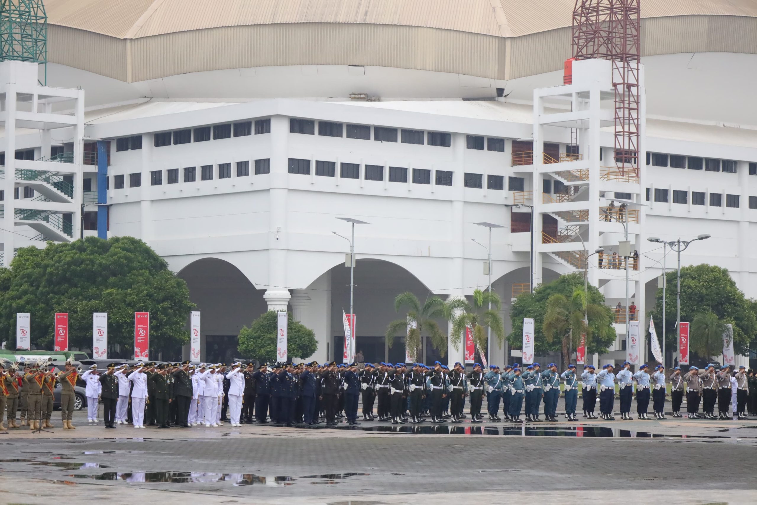 TNI AL, Belawan,- Komandan Pangkalan Utama TNI Angkatan Laut I (Danlantamal I) Brigjen TNI (Mar) Jasiman Purba, S.E., CHRMP., didampingi Ketua Korcab I DJA I Ny. Othy Jasiman Purba beserta Forkopimda Sumatera Utara menghadiri Upacara Hari Ulang Tahun ke79 Kemerdekaan Republik Indonesia Tahun 2024 dengan tema, “Nusantara Baru, Indonesia Maju”, dipimpin oleh Pj. Gubernur Sumatera Utara Drs. Dr. Agus Fatoni, M.Si., bertempat di Lapangan Astaka, Medan, Sumatera Utara, Sabtu (17/8/2024).