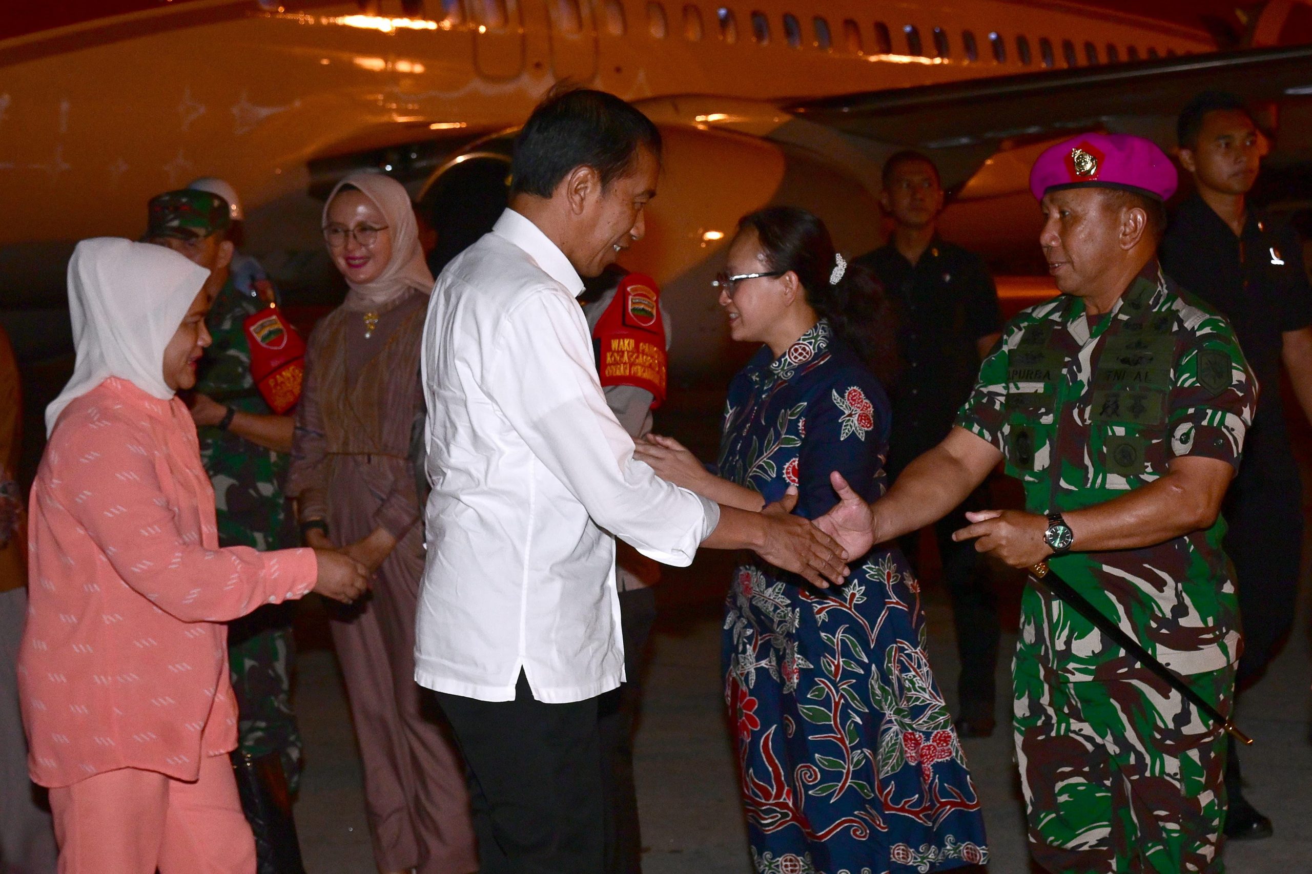 TNI AL, Belawan,- Komandan Pangkalan Utama TNI Angkatan Laut I (Danlantamal I) Kolonel Marinir Jasiman Purba, S.E., CHRMP., didampingi Ketua Korcab I DJA I Ny. Othy Jasiman Purba, menyambut kedatangan Presiden Republik Indonesia Joko Widodo beserta Ibu Iriana Joko Widodo, bertempat di Bandar Udara Internasional Kuala Namoe, Kabupaten Deli Serdang, Sumatera Utara, Selasa (6/2/2024).