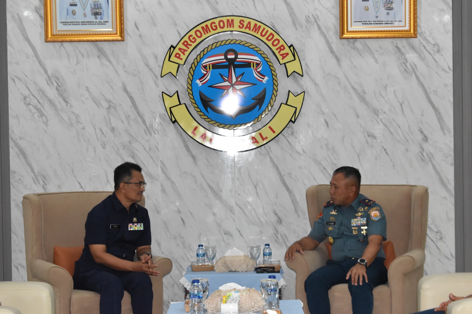 TNI AL, Belawan,- Komandan Pangkalan Utama TNI Angkatan Laut I (Danlantamal I) Brigjen TNI (Mar) Jasiman Purba, S.E., CHRMP., menerima Courtesy Call Ketua Umum Yayasan Hang Tuah Laksda TNI (Purn) Dr. Dani Achdani, S.Sos., S.E., M.A.P., beserta rombongan, bertempat di VVIP Room Mako Lantamal I, Jalan Serma Hanafiah No. 01 Belawan, Sumatera Utara, Kamis (21/11/2024).