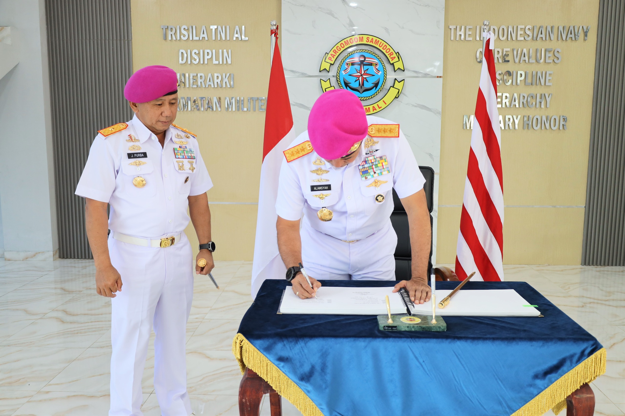 TNI AL, Belawan,- Komandan Pangkalan Utama TNI Angkatan Laut I (Danlantamal I) Brigjen TNI (Mar) Jasiman Purba, S.E., CHRMP., menerima kunjungan kerja Dankodiklatal Letjen TNI Marinir Nur Alamsyah, didampingi Ketua Gabungan Jalasenastri Kodiklatal Ny. Ayu Nur Alamsyah beserta rombongan, bertempat di Mako Lantamal I, Jalan Serma Hanafiah No.01 Belawan, Sumatera Utara, Rabu (12/6/2024).