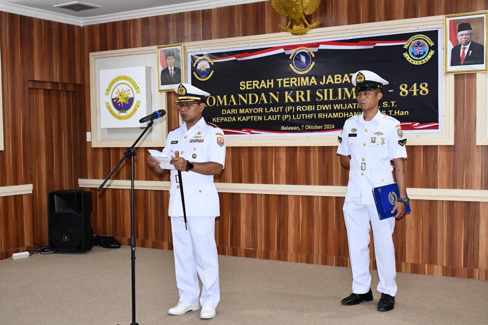 TNI AL, Belawan,- Komandan Satrol Lantamal I Kolonel Laut (P) Ristanto Putro, S.M., M.Tr. Opsla., CHRMP., memimpin Serah Terima Jabatan Komandan KRI Siliman-848 dari Mayor Laut (P) Robi Dwi Wijatmiko, S.T., kepada Kapten Laut (P) Luthfi Ramdhani Apriyanto, S.S. T.Han., bertempat di Gedung Serba Guna Satrol Lantamal I, Jalan Bengkalis No. 01 Belawan, Sumatera Utara, Senin (07/10/2024).
