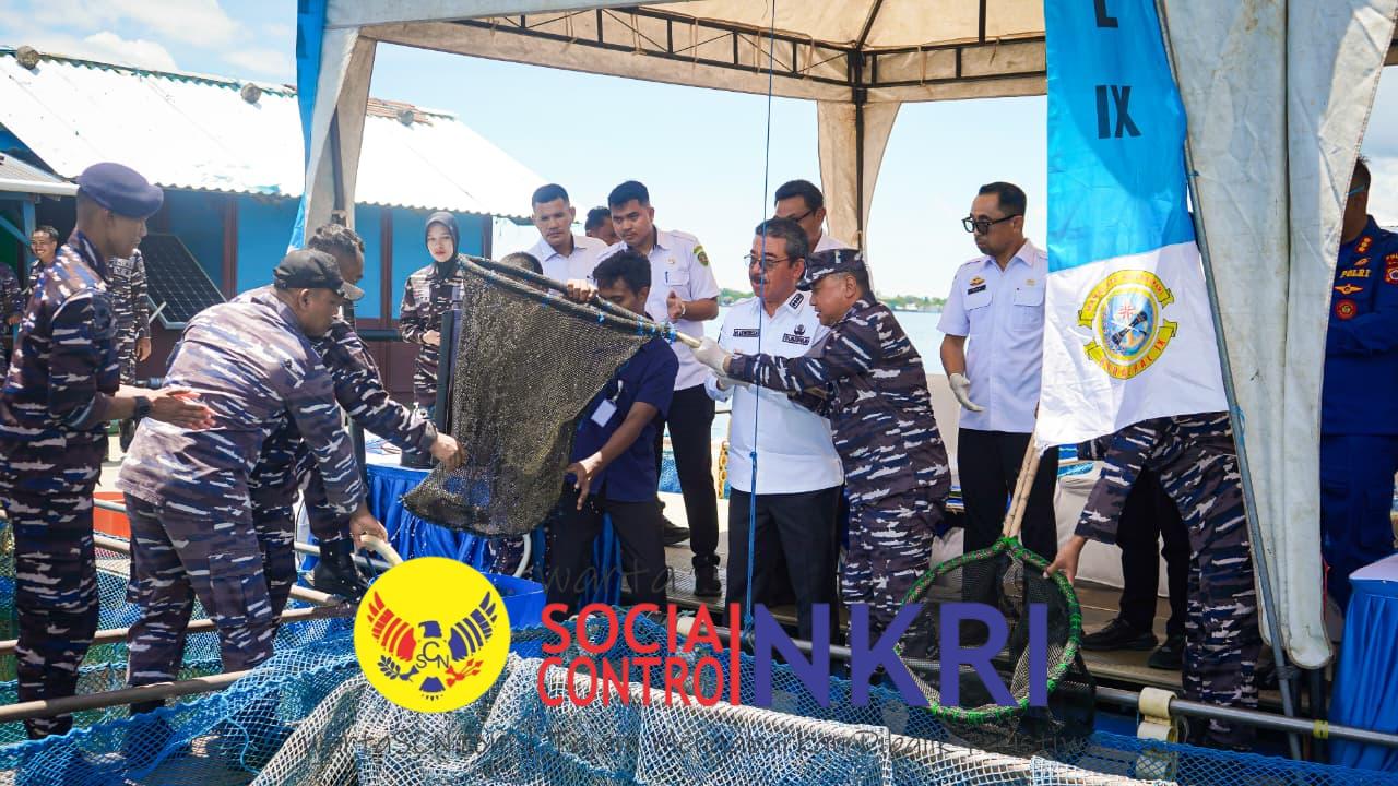 TNI AL, Ambon,- Komandan Komando Daerah Angkatan Laut (Dankodaeral) IX Laksamana Muda TNI Hanarko Djodi Pamungkas S.H., mengikuti kegiatan vicon panen serentak TNI AL, bertempat di Keramba Jaring Apung (KJA) Perairan Teluk Ambon, Rabu (29/10/2025).