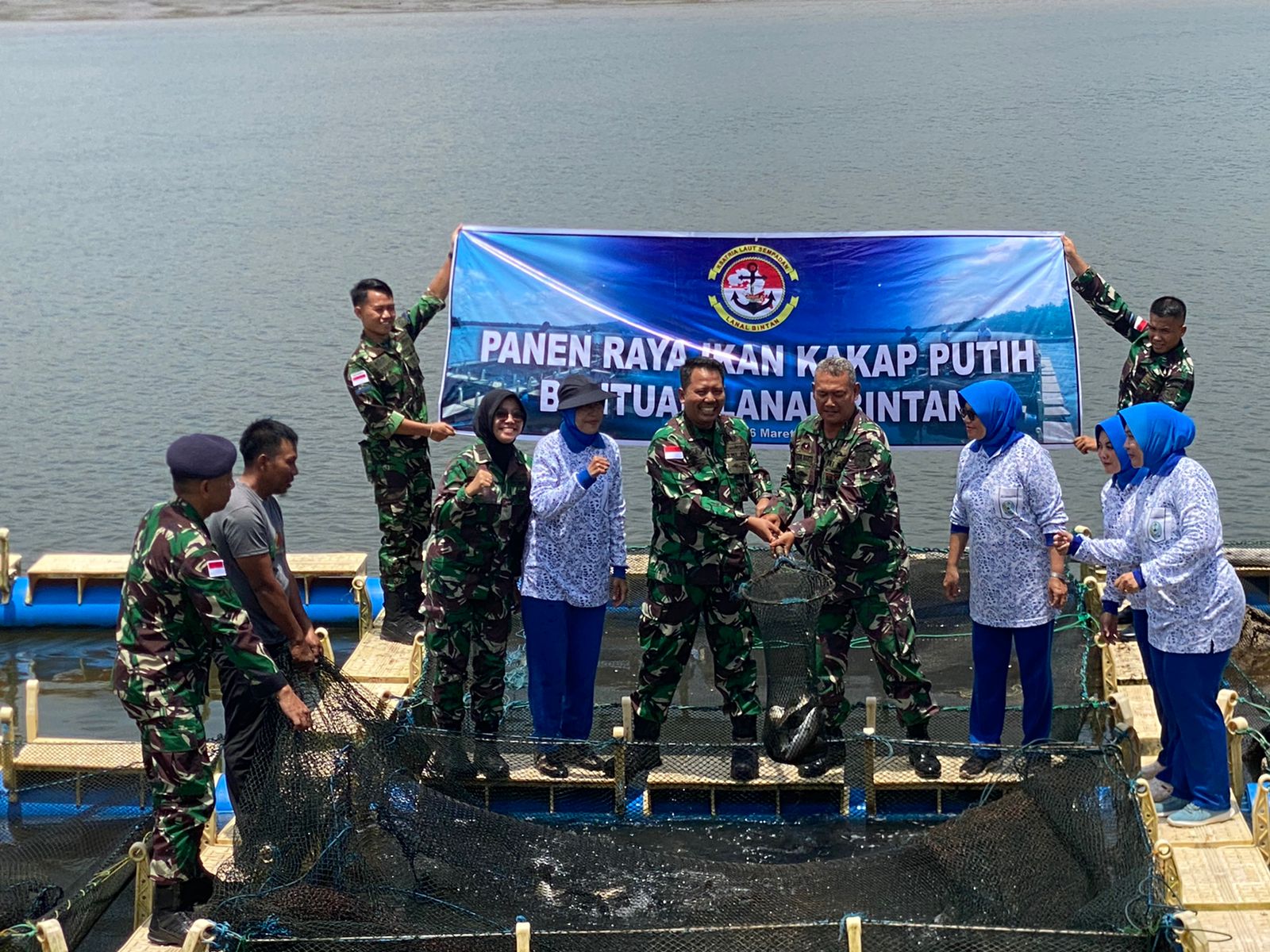 Dukung Program Ketahanan Pangan, Danlanal Bintan Laksanakan Panen Raya Budidaya Ikan Kakap Putih