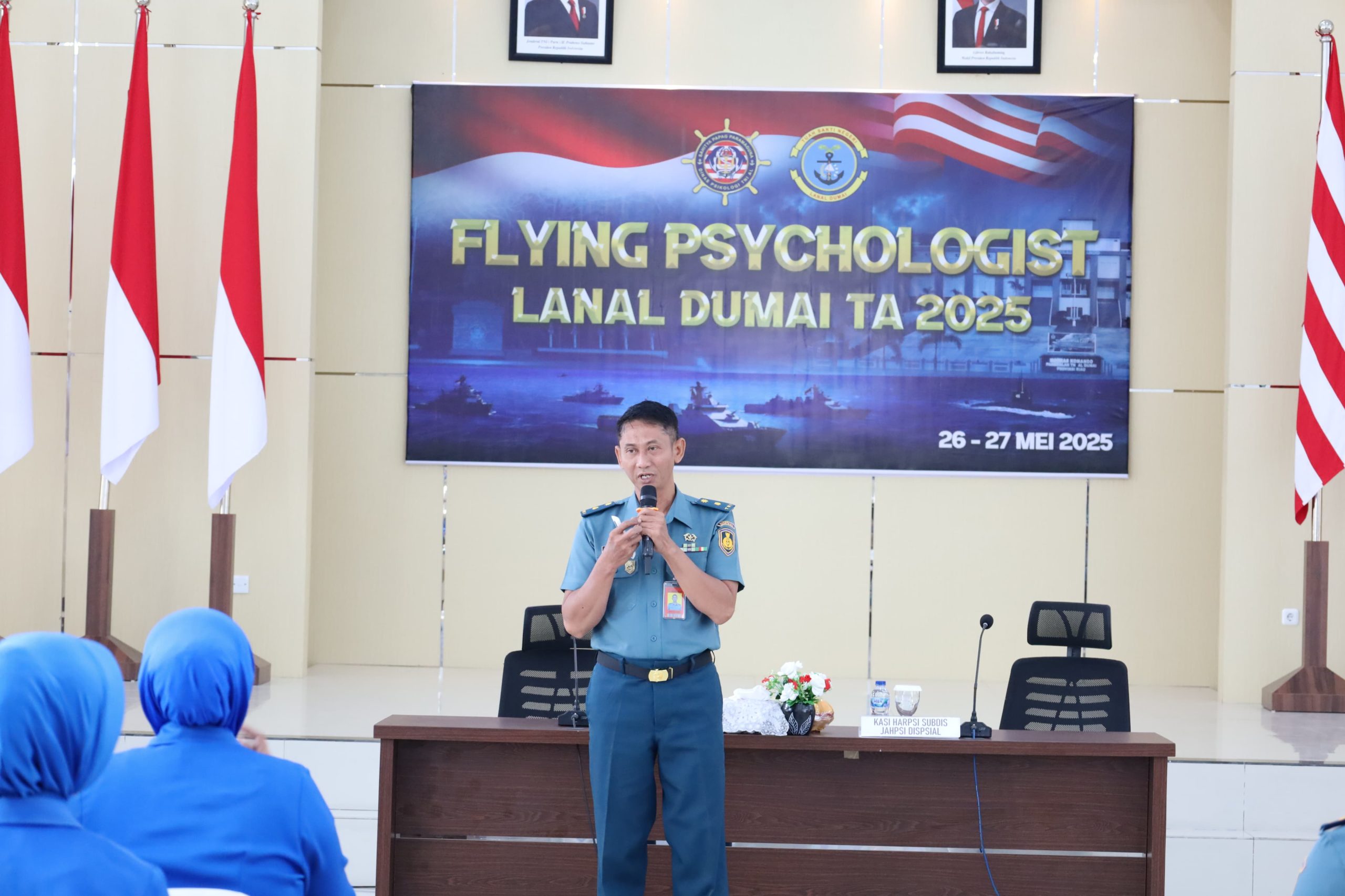 TNI AL, Dumai,- Penuh antusias dan semangat, Komandan Lanal Dumai Kolonel Laut (P) Abdul Haris S.E., M.M.D.S., bersama Prajurit, PNS dan Ibu Jalasenastri Lanal Dumai mengikuti rangkaian kegiatan Flying Psychologist, bertempat di Gedung Serba Guna Wijaya Kusuma Mako Lanal Dumai, Jalan Yos Soedarso No.01 Kota Dumai, Senin (26/5/2025).