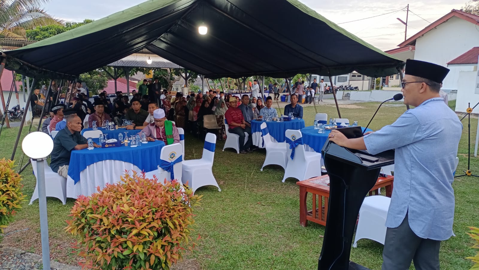 Acara yang penuh khidmat dan kehangatan ini diawali dengan pembacaan ayat suci Al qur’an oleh Serda Farhan Mubarak serta Saritilawah oleh Kld Ikbar Hakim Sitompul, dilanjutkan kata sambutan Komandan Lanal Dabo Singkep Letkol Laut (P) Tri Hermawan MA., M.Tr. Opsla.