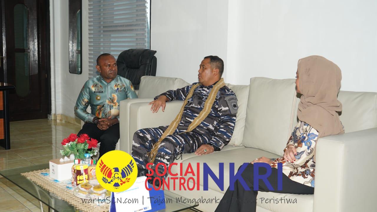 Usai meninjau fasilitas di Lanal Sarmi, Dankodaeral X beserta rombongan melanjutkan kunjungan ke Kantor Bupati Kabupaten Sarmi, di mana mereka disambut hangat oleh Bupati Dominggus Catue, SKM., M.Kes., bersama Wakil Bupati Hj. Jumriati, S.H.. Pertemuan berlangsung dalam suasana penuh keakraban dan saling menghormati, menggambarkan sinergi antara unsur TNI AL dan pemerintah daerah dalam membangun wilayah pesisir dan menjaga kedaulatan laut.