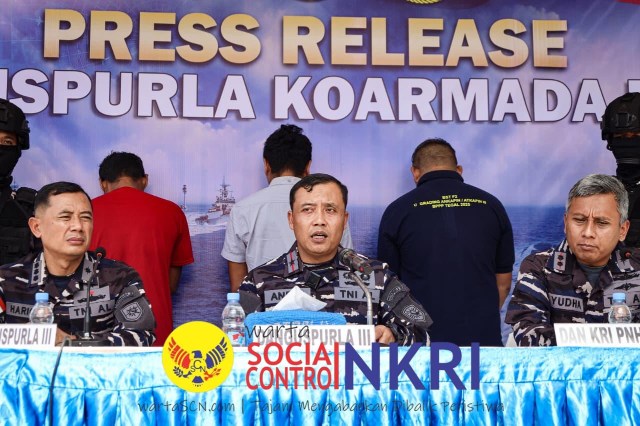 TNI AL,Ambon,- Guspurla Koarmada III gelar Press Release penangkapan KM. Bangka Jaya 9, bertempat di Kantor Nala Satrol Kodaeral IX, Minggu (16/11/2025)