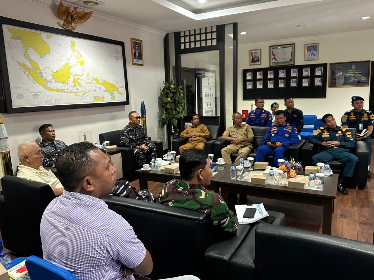 TNI AL, Dabo Singkep,- Dalam rangka Hari Hidrografi TNI Angkatan Laut 2025, Komandan Lanal Dabo Singkep Letkol Laut (P) Tri Hermawan, M.A., M.Tr.Opsla., bersama Unsur Kemaritiman melaksanakan Coffee Morning di Lobby Mako Lanal DBS, Jalan Yos Soedarso No. 1, Kelurahan Dabo Lama, Kecamatan Singkep, Kabupaten Lingga, Selasa (4/2/2025).