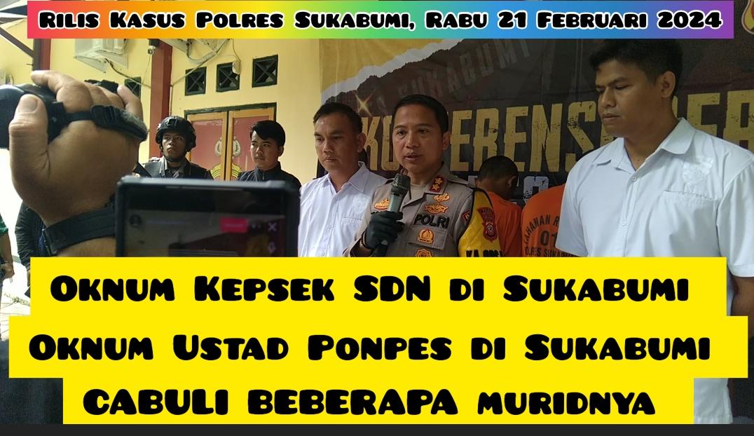 Oknum Kepala Sekolah SDN di Sukabumi cabuli murid-muridnya, ada 10 orang murid/siswinya yang dicabuli oleh Oknum Kepala Sekolah/Kepsek tersebut selama dari Januari 2023 hingga Februari 2024, hal tersebut disampaikan oleh Kapolres sukabumi AKBP Tony Prasetyo Yudhangkoro dalam Konferensi Persnya di Polres Sukabumi, Rabu 21 Februari 2024.