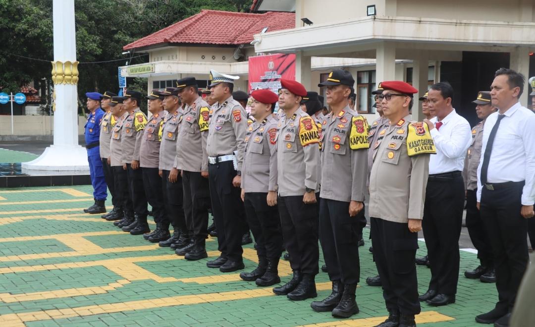 Sukabumi – Lapangan Apel Polres Sukabumi menjadi saksi pelaksanaan Apel Pengecekan Dan Penyerahan Kelengkapan Anggota Dalam Rangka Pengamanan TPS Pemilu 2024 Polres Sukabumi. Kegiatan ini dipimpin oleh Kapolres Sukabumi, AKBP Tony Prasetyo didampingi oleh Pejabat Utama (PJU) Polres Sukabumi dan Kepala Kepolisian Sektor (Kapolsek) Jajaran.
