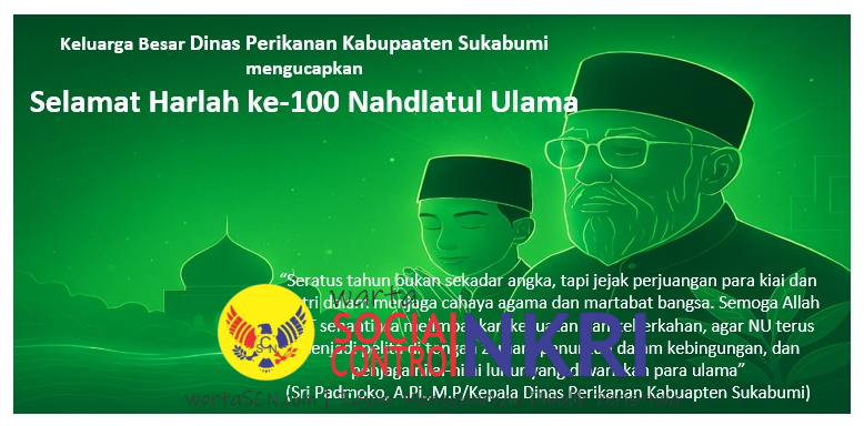 WartaSCN.com, – Sukabumi, 31 Januari 2026 – Dalam semangat Sukabumi Mubarokah yang menjiwai gerak pembangunan daerah dan spiritualitas masyarakat, Keluarga Besar Dinas Perikanan Kabupaten Sukabumi menyampaikan penghormatan dan doa terbaik bagi Nahdlatul Ulama yang kini genap berusia satu abad. Seratus tahun NU bukan hanya sejarah, tetapi warisan perjuangan yang hidup dalam jiwa para kiai, santri, dan umat yang mencintai negeri ini.