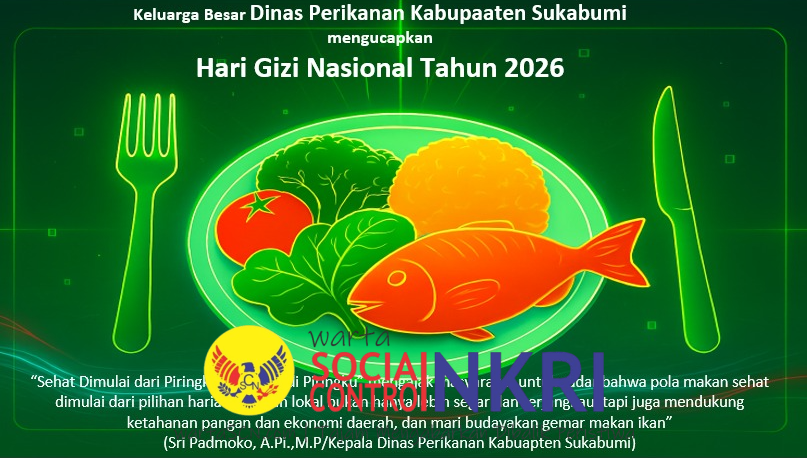 WartaScn.com,- Sukabumi, 25 Januari 2026 – Dalam semangat Sukabumi Mubarokah yang menjiwai gerak pembangunan dan kesejahteraan masyarakat, Keluarga Besar Dinas Perikanan Kabupaten Sukabumi turut memperingati Hari Gizi Nasional ke-66 dengan penuh komitmen dan harapan. Tahun ini, kampanye gizi nasional mengusung tema “Penuhi Gizi Seimbang dari Pangan Lokal” dengan slogan yang sederhana namun bermakna: “Sehat Dimulai dari Piringku”.