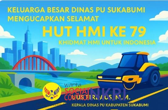 Wartascn.com, Sukabumi, Keluarga Besar Dinas PU Sukabumi mengucapkan selamat atas HUT HMI ke-79 Tahun 2026. Selama hampir delapan dekade, HMI telah hadir sebagai penggerak semangat kebangsaan, menuntun generasi muda untuk berkhidmat bagi Indonesia.