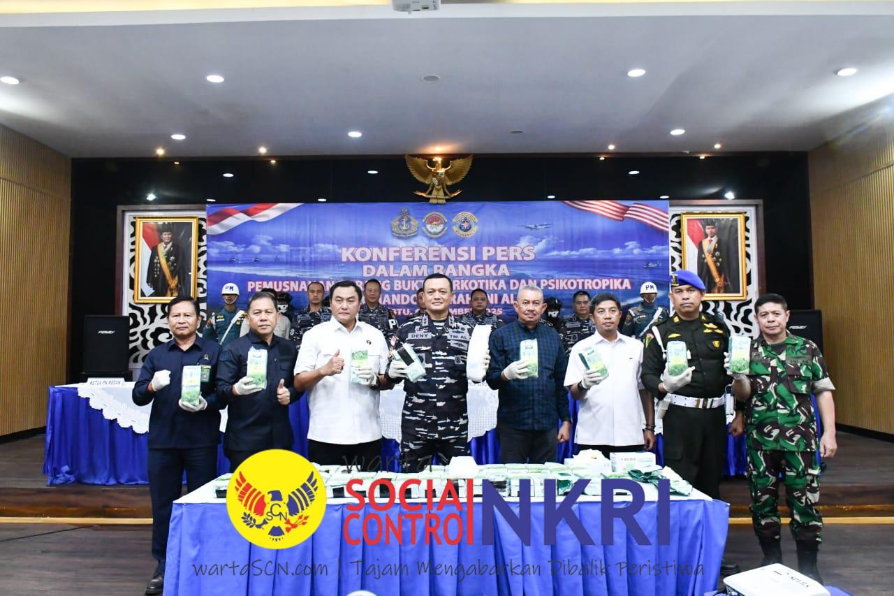 Wartascn.com, Medan, 6 Desember 2025 – Komando Daerah Angkatan Laut I (Kodaeral I) memusnahkan barang bukti narkotika jenis ketamine seberat 41,7 kilogram di Gedung Yos Sudarso, Mako Kodaeral I Medan. Pemusnahan yang berlangsung pada Sabtu pukul 10.00 WIB ini menjadi bukti nyata konsistensi TNI AL dalam menindak penyelundupan narkoba melalui jalur laut dan memperkuat keamanan perairan yurisdiksi nasional.