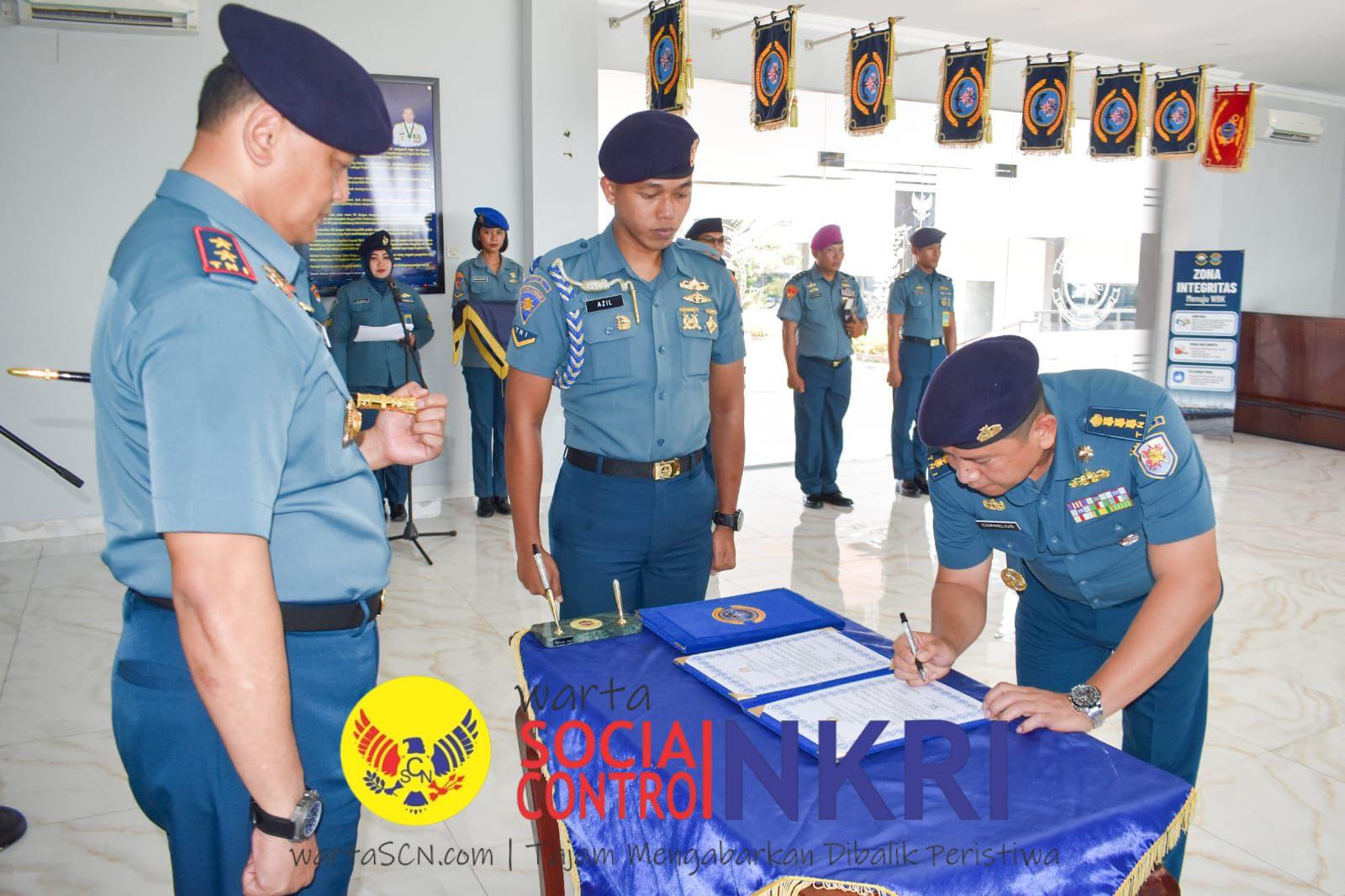 Laksamana Muda TNI Deni Septiana, S.I.P., M.A.P., memimpin acara Pengukuhan Jabatan Kepala Fasilitas Pemeliharaan dan Perbaikan (Kafasharkan) Sabang Kolonel Laut (T) Cornelius Hasiholan Sinaga, S.E., M.M., CRMP., bertempat di Lobby Gedung Utama Mako Kodaeral I, Jalan Serma Hanafiah No.01 Belawan, Sumatera Utara, Rabu (20/08/2025).