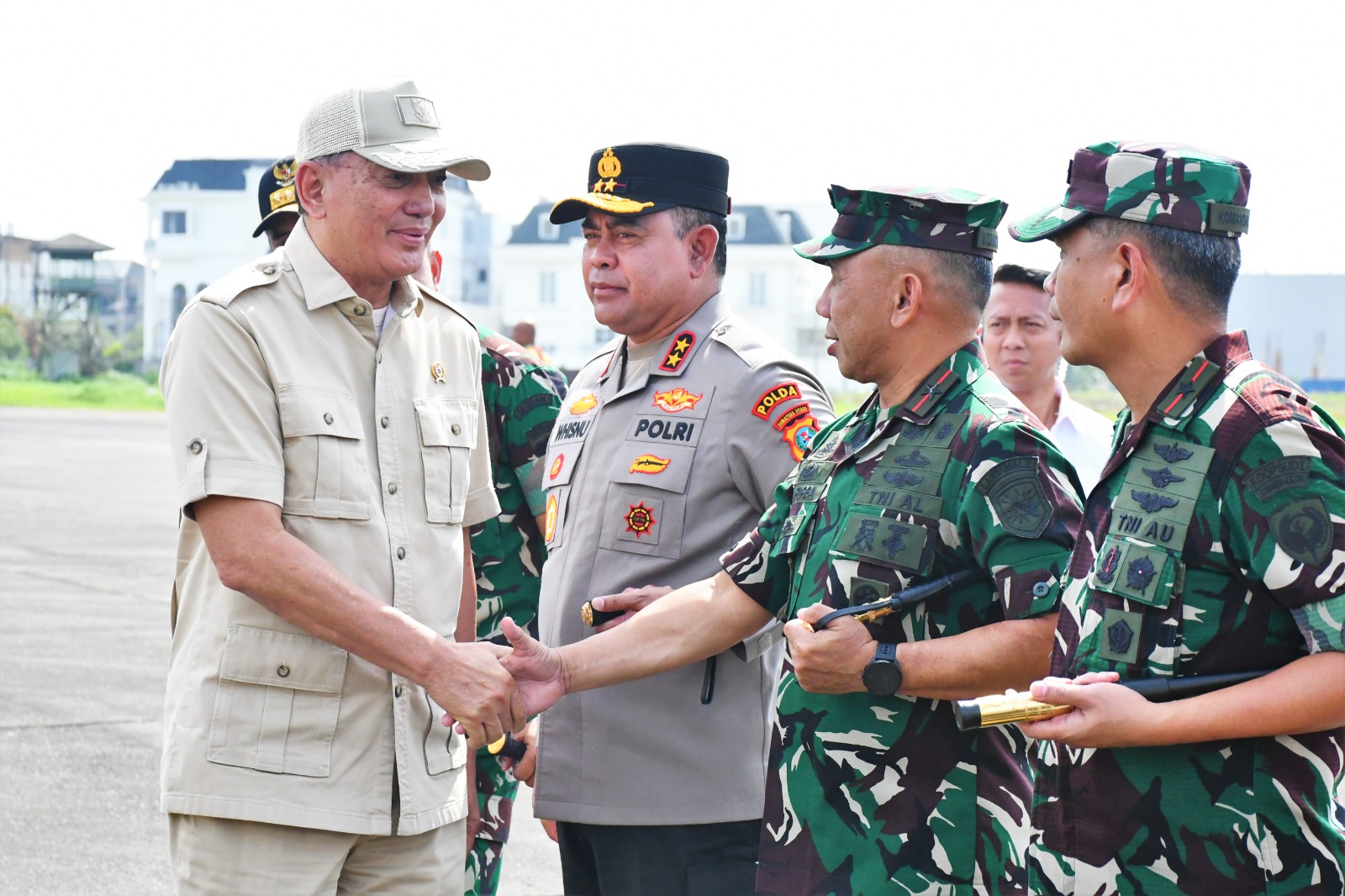TNI AL, Belawan,- Komandan Pangkalan Utama TNI AL (Danlantamal) I Brigjen TNI (Mar) Jasiman Purba, S.E., CHRMP., menyambut kedatangan Menteri Pertahanan Republik Indonesia (Menhan RI) Letjen TNI (Purn) Sjafrie Sjamsoeddin beserta rombongan, bertempat di Base Ops Lanud Soewondo Medan, Jalan Imam Bonjol, Suka Damai, Kecamatan Medan Polonia, Kota Medan, Provinsi Sumatera Utara, Senin (24/03/2025).