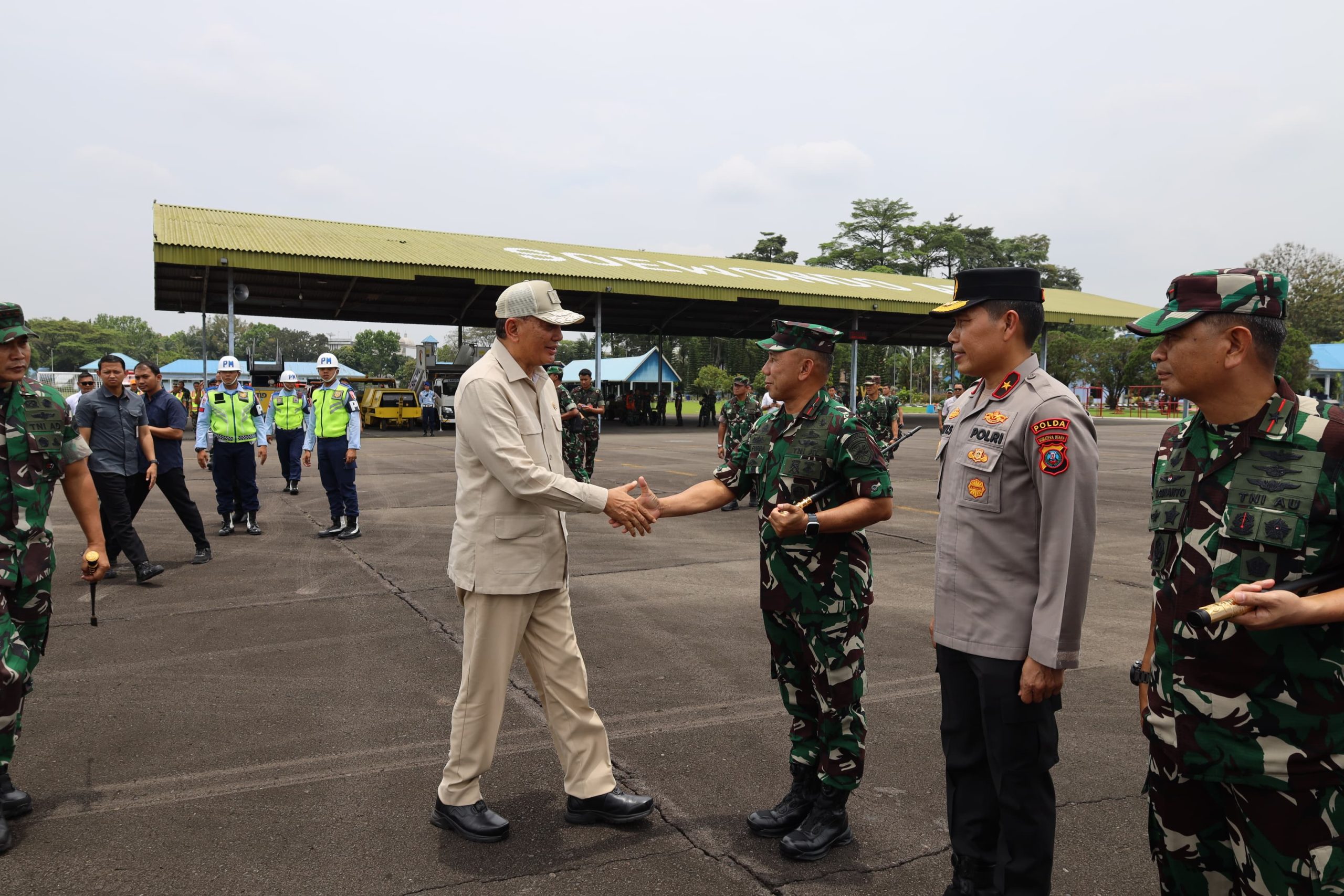 TNI AL, Belawan,- Komandan Lantamal I Brigjen TNI (Mar) Jasiman Purba, S.E., CHRMP., melaksanakan pengantaran keberangkatan Menteri Pertahanan Republik Indonesia (Menhan) RI Letjen TNI (Purn) Sjafrie Sjamsoeddin beserta rombongan, bertempat di Base Ops Lanud Soewondo Medan, Jalan Imam Bonjol No. 1, Suka Damai, Kota Medan, Provinsi Sumatera Utara, Selasa (25/3/2025).