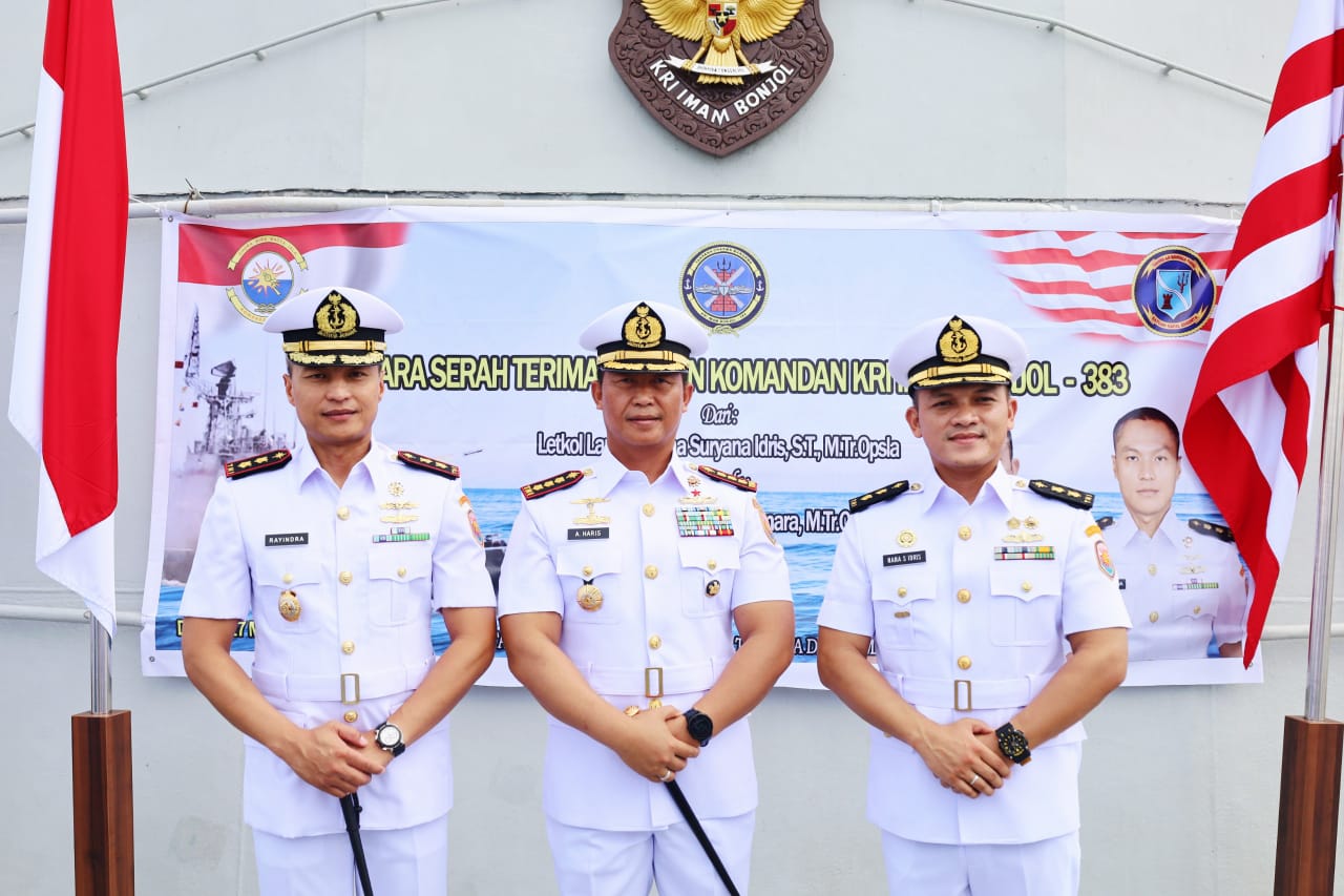 TNI AL, Dumai- Ditengah tugas melaksanakan pengamanan perbatasan Indonesia-Malaysia dalam Operasi Tameng Ghora, KRI Imam Bonjol-383 resmi melaksanakan pergantian Komandan. Adapun jabatan Komandan KRI Imam Bonjol-383 yang semula dijabat oleh Letkol Laut (P) Nana Suryana Idris S.T.,M.Tr.Opsla., diserahterimakan kepada penggantinya Letkol Laut (P) Rayindra Asmara, M.Tr.Opsla.