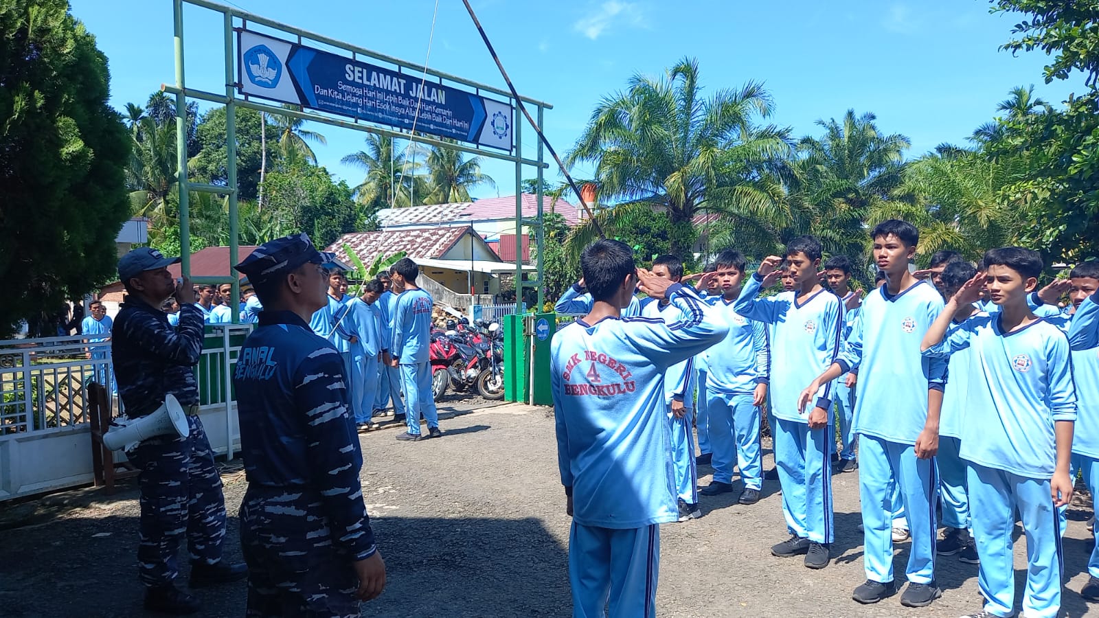 TNI AL, Bengkulu,- Guna membina disiplin dan mental, Pangkalan TNI AL Bengkulu mendidik siswa-siswi baru SMKN 4 Kota Bengkulu, kegiatan pengenalan ketarunaan di lingkungan sekolah untuk membentuk karakter peserta didik, kegiatan dilaksanakan di Kawasan Kota Tua Pasar Bengkulu, Kecamatan Sungai Serut, Kota Bengkulu, Jumat (01/03/2024).