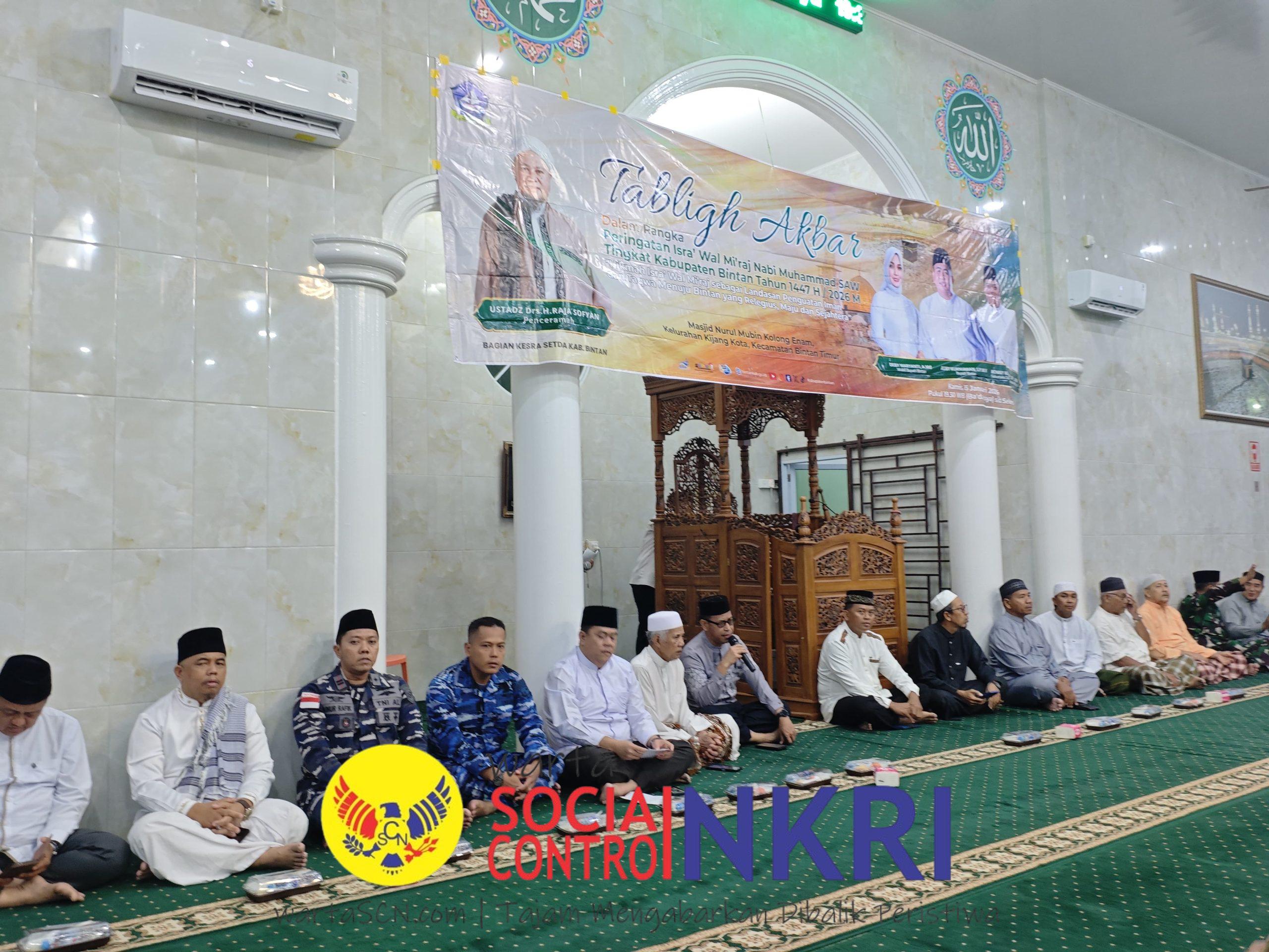 TNI AL, Bintan,- Dalam rangka memperingati Isra’ Mi’raj Nabi Muhammad SAW tahun 1447 H/2026, Komandan Pos TNI AL (Posal) Kijang Lettu Laut (P) Ainur Rafik, mewakili Komandan Lanal Bintan turut hadir dalam acara yang digelar di Masjid Nurul Mubin Kolong Enam, Kecamatan Bintan Timur, Kabupaten Bintan. Kamis (15/01/2026).