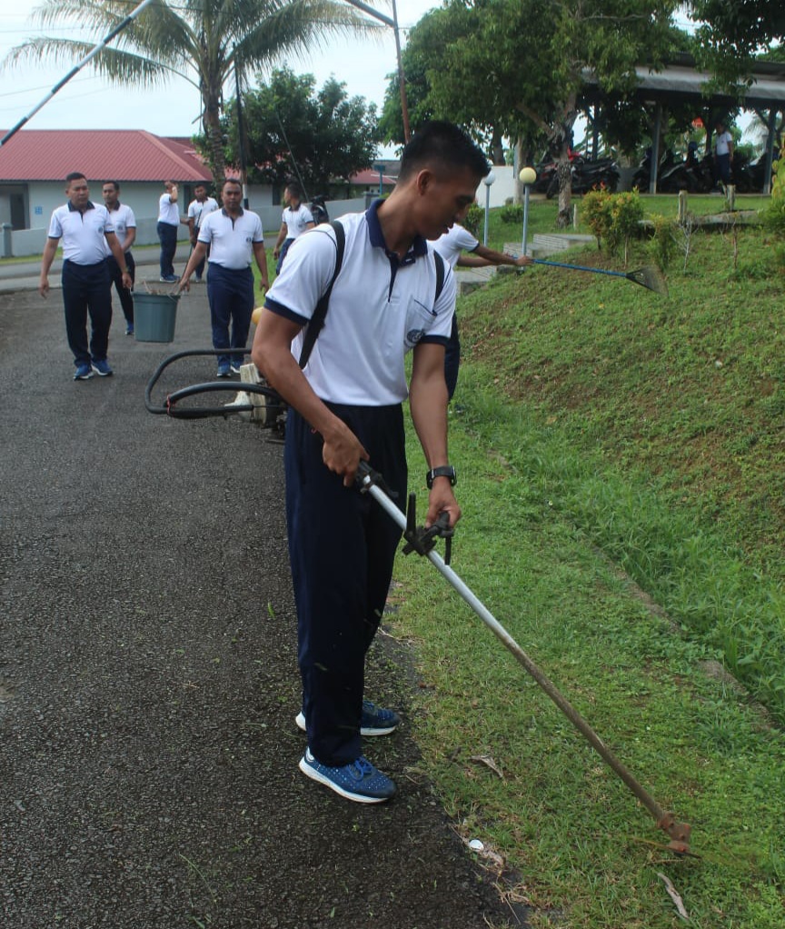 TNI AL, Dabo Singkep,- Komandan Pangkalan TNI Angkatan Laut Dabo Singkep (Danlanal DBS) Letkol Laut (P) Tri Hermawan M.A., M.Tr.Opsla., beserta Prajurit dan PNS Lanal Dabo Singkep menggelar aksi bersih-bersih disekitar Komplek TNI Angkatan Laut Dabo Singkep, Jumat (26/01/2024).