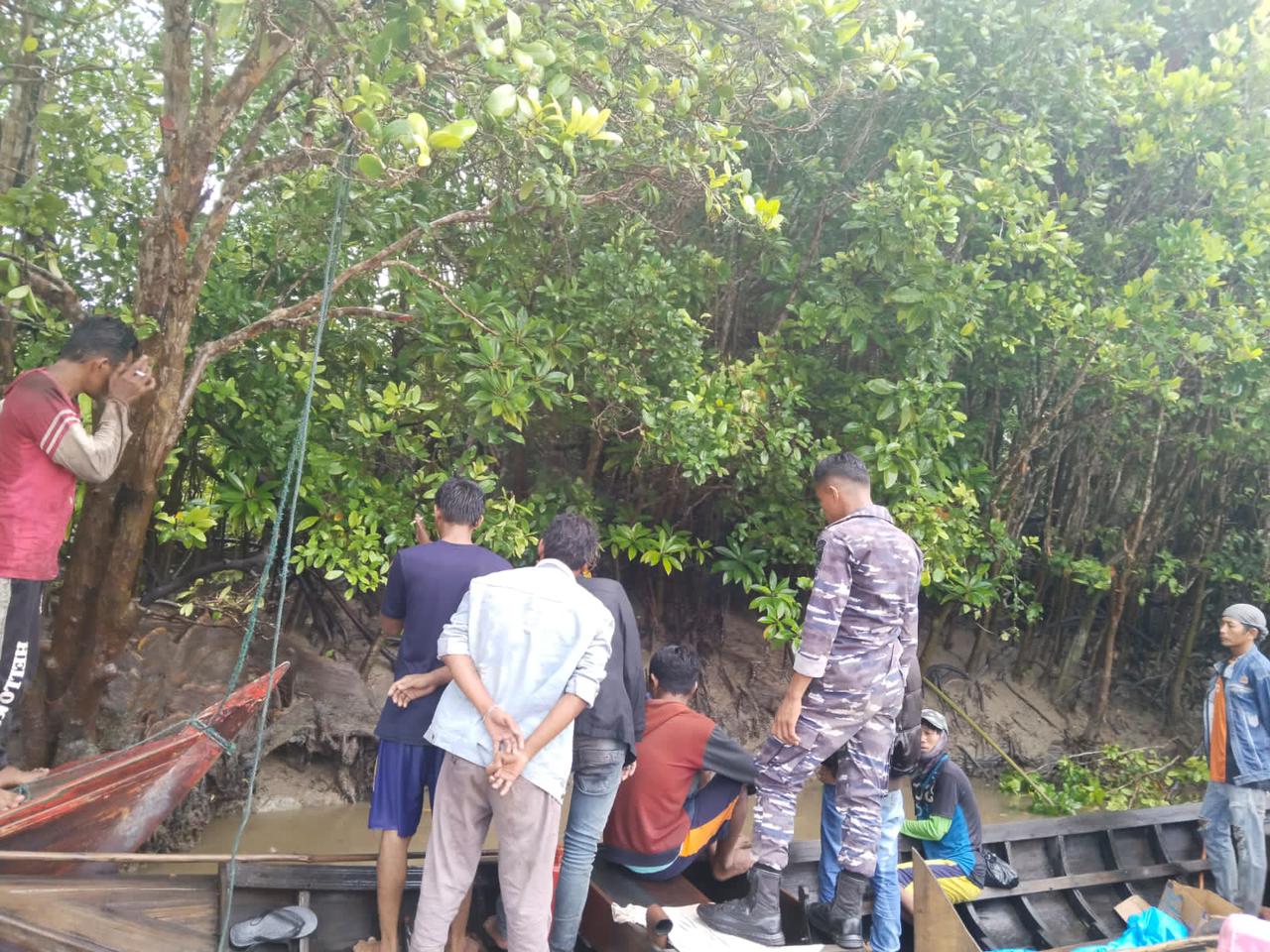 Tim SAR Gabungan terdiri dari Posal Kuala Enok, Polsek Tanah Merah, Basarnas, BPBD Kecamatan Tanah Merah dan masyarakat setempat.