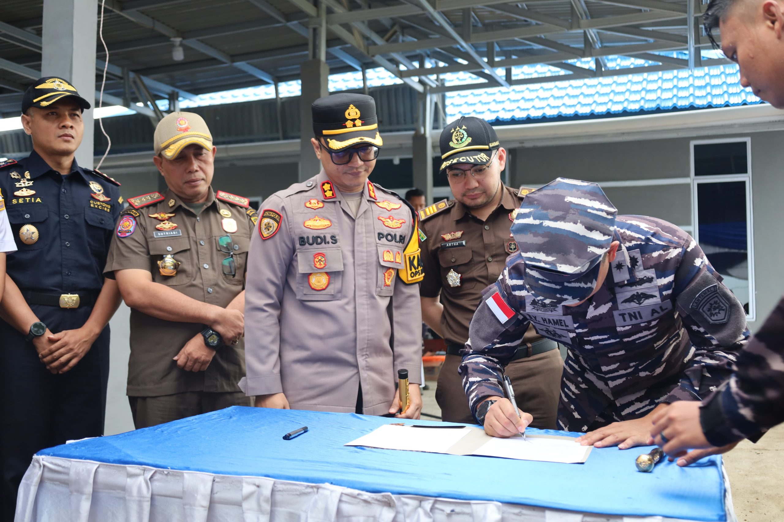 Turut Hadir dalam kegiatan tersebut, Pj. Bupati Inhil diwakili Kepala Satpol PP Inhil Drs. Sutrisadi, Kajari Inhil yang diwakili Kasi PB3R Arsitha Agustian, S.H., M.H., Kapolres Inhil AKBP Budi Setiawan, S.I.Κ., Μ.Ι.Κ., Palaksa Lanal Dumai Letkol Laut (PM) Priatno, S.H., M.H., Kepala KPPBC TMP C Tembilahan Setiawan Rosyidi.