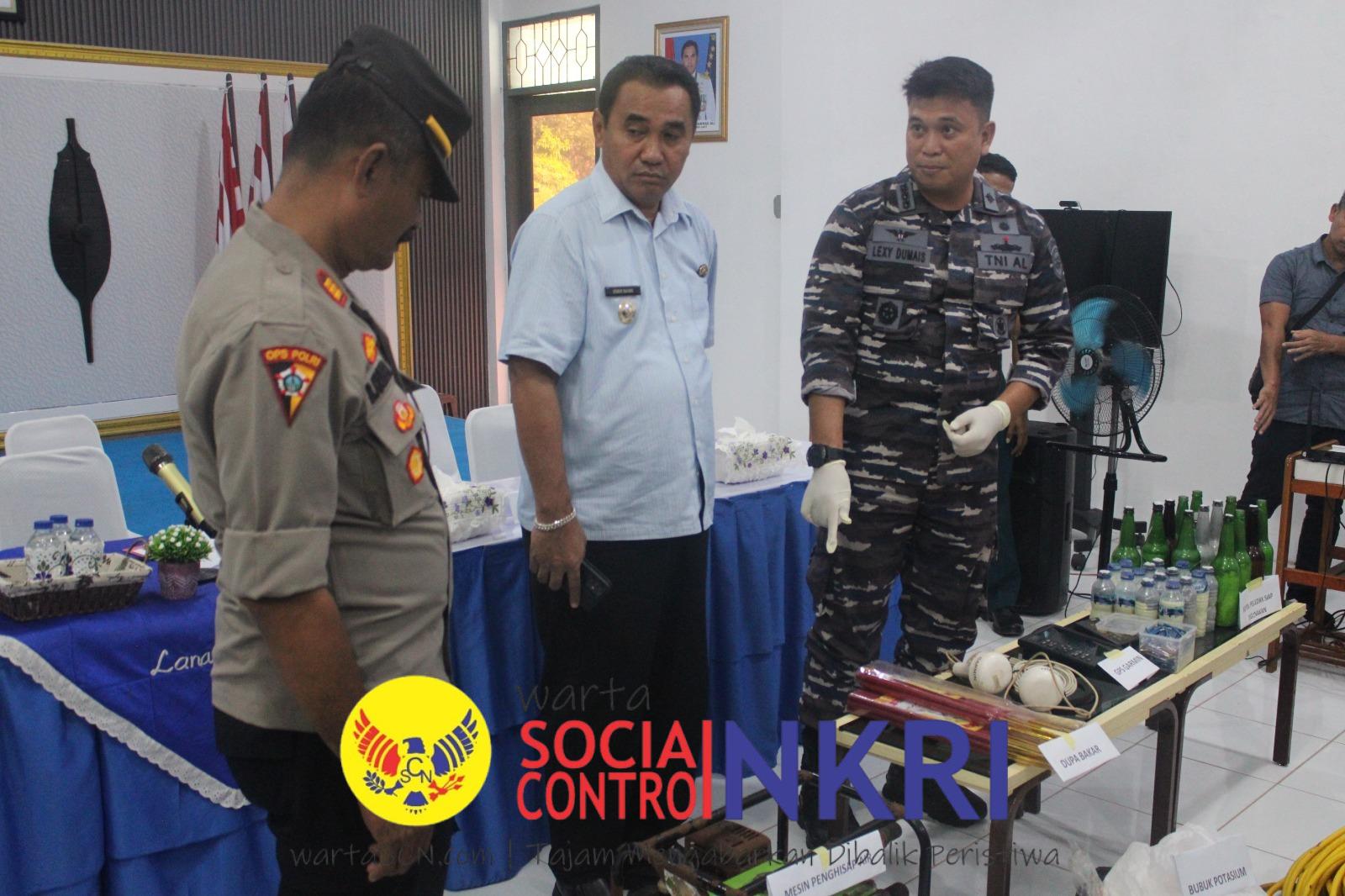Saat dilakukan penangkapan, ABK yang berjumlah 7 orang tidak melakukan perlawanan sehingga memudahkan petugas untuk melakukan penindakan dan pemeriksaan, didapat beberapa bukti bahan peledak serta alat pendukung yakni kompresor, mesin dompeng, korek api, bubuk mesiu, sumbu peledak, serta bubuk potasium.