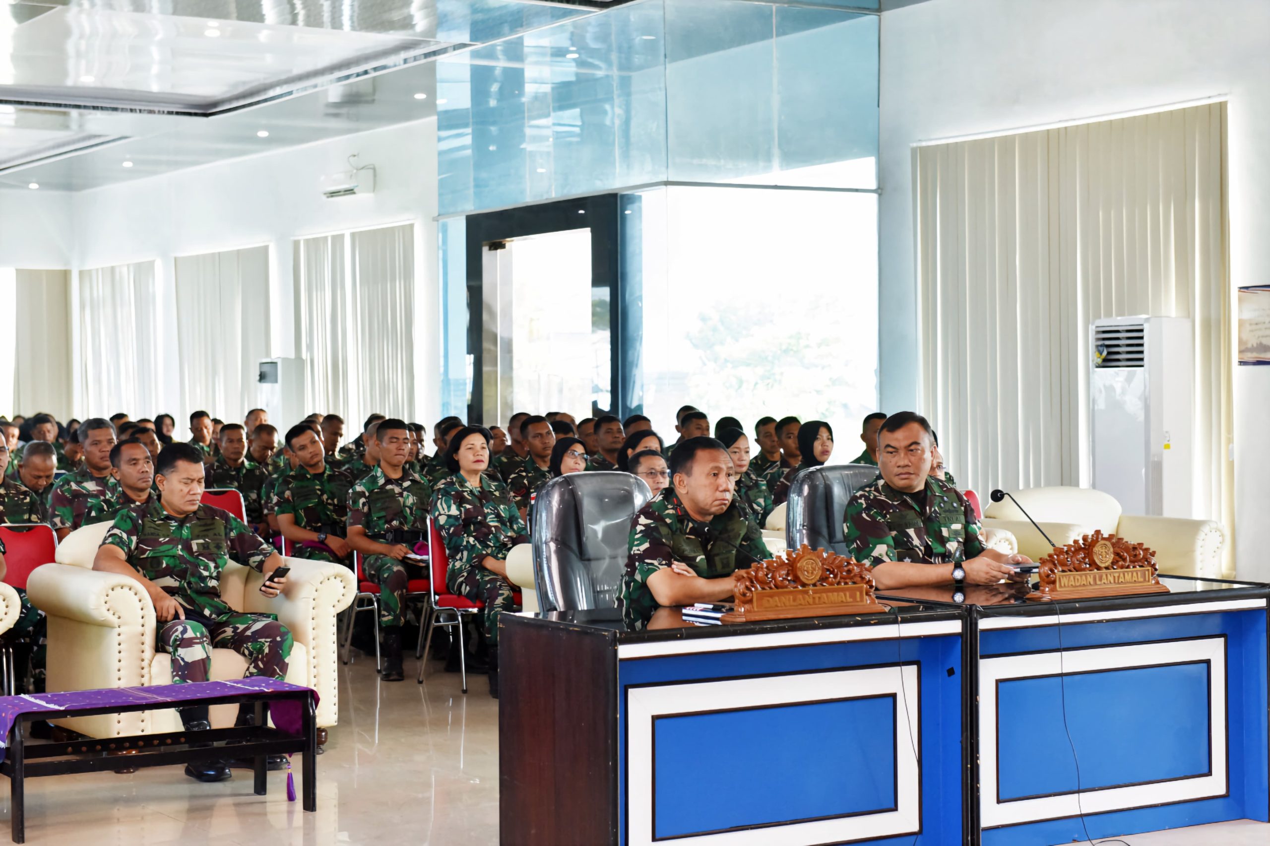 TNI AL, Belawan,- Komandan Pangkalan Utama TNI Angkatan Laut I (Danlantamal I) Brigjen TNI (Mar) Jasiman Purba, S.E., CHRMP., mengikuti Exit Briefing Pangkoarmada I Laksda TNI Achmad Wibisono melalui vicon, bertempat di Gedung OB Syaaf Mako Lantamal I, Jalan serma Hanafiah No.01 Belawan, Sumatera Utara, Jumat (22/3/2024).