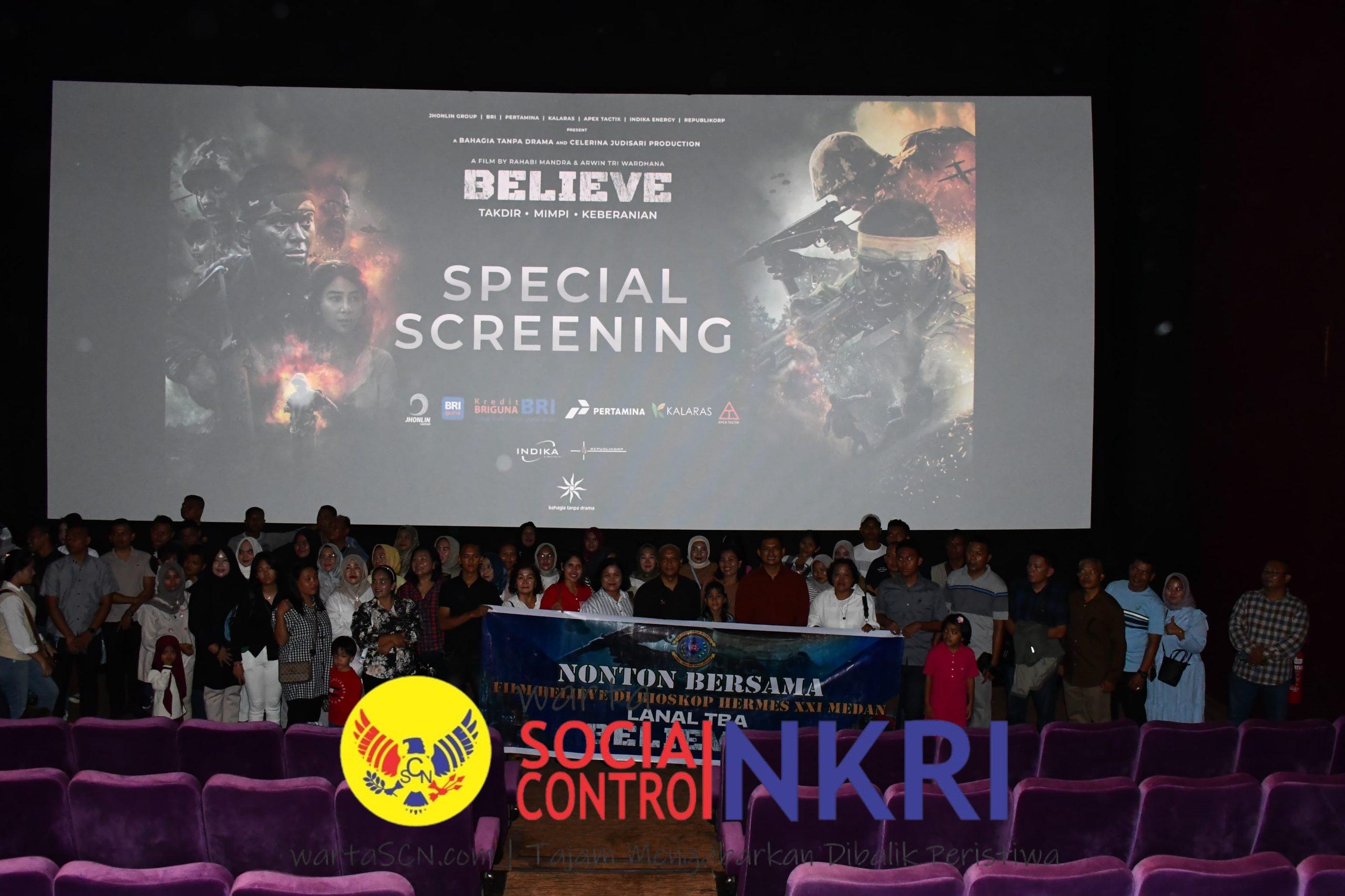 TNI AL, Tanjung Balai,- Untuk mempererat kebersamaan dan menumbuhkan semangat nasionalisme, Danlanal TBA Letkol Laut (P) Agung Dwi H.D, M.Tr. Opsla., CTMP., bersama Prajurit dan Keluarga Besar Lanal Tanjung Balai Asahan melaksanakan kegiatan Nonton Bareng Film Believe di Bioskop Hermes XXI Medan, Jumat (18/7/2025).