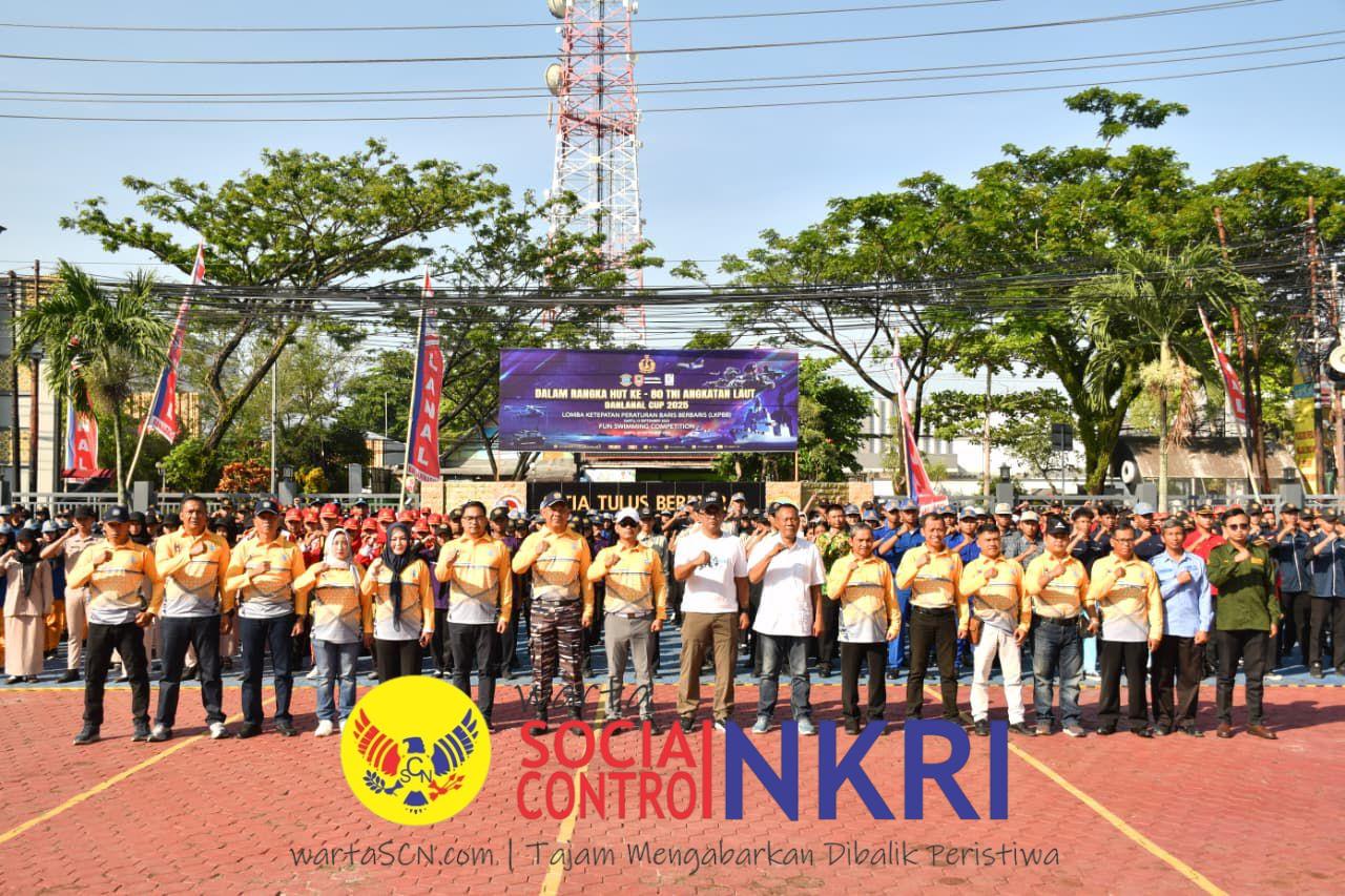 TNI AL, Banjarmasin,- Dalam rangka menyemarakan serta memeriahkan HUT Ke-80 TNI Angkatan Laut, Komandan Pangkalan TNI Angkatan Laut (Danlanal) Banjarmasin Kolonel Laut (P) Ahmad Ahsan, S.E., M.Tr.Hanla, M.M., beserta Walikota Banjarmasin M. Yamin dan Forkopimda Kota Banjarmasin membuka Lomba Ketepatan Peraturan Baris Berbaris (LKPBB) yang dilaksanakan di Lapangan Apel Mako Lanal Banjarmasin, Jalan Ahmad Yani, KM 3,5, Kecamatan Banjarmasin Timur, Banjarmasin Kota, Provinsi Kalimantan Selatan, Sabtu (13/09/2025).