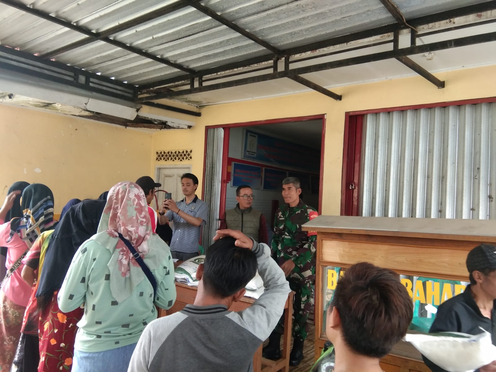 Pembagian Bansos Beras di Desa Cicareuh di Hadiri Babinsa Koramil Cikidang