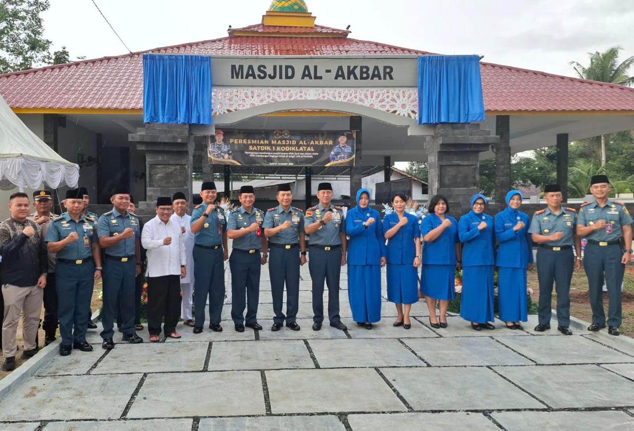 TNI AL, Bintan,- Komandan Lanal Bintan Kolonel Laut (P) Dr. Eko Agus Susanto, S.E., M.M., turut mendampingi Komandan Kodiklatal Letnan Jenderal TNI (Mar) Nur Alamsyah, S.E., M.M., M.Tr.(Han)., dalam rangka meresmikan Masjid Al Akbar Mako Satdik 1 Tanjung Uban yang dihadiri oleh Forkopimda Bintan, bertempat di Satdik 1 Tanjung Uban, Bintan, Jum’at (14/03/2025).