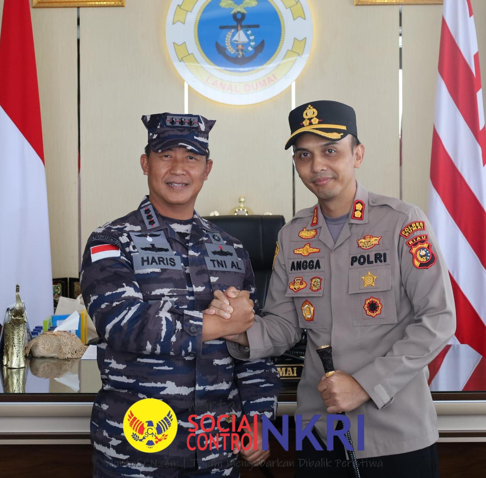 TNI AL, Dumai,– Komandan Pangkalan TNI Angkatan Laut Dumai Kolonel Laut (P) Abdul Haris, S.E., M.M.D.S., menerima kunjungan silaturahmi Kapolres Dumai AKBP Angga Febrian Herlambang, S.I.K., S.H. Pertemuan berlangsung hangat di Lounge Room Mako Lanal Dumai, Jalan Yos Soedarso, Kelurahan Buluh Kasap, Kecamatan Dumai Timur, Kota Dumai, Selasa (02/09/2025).