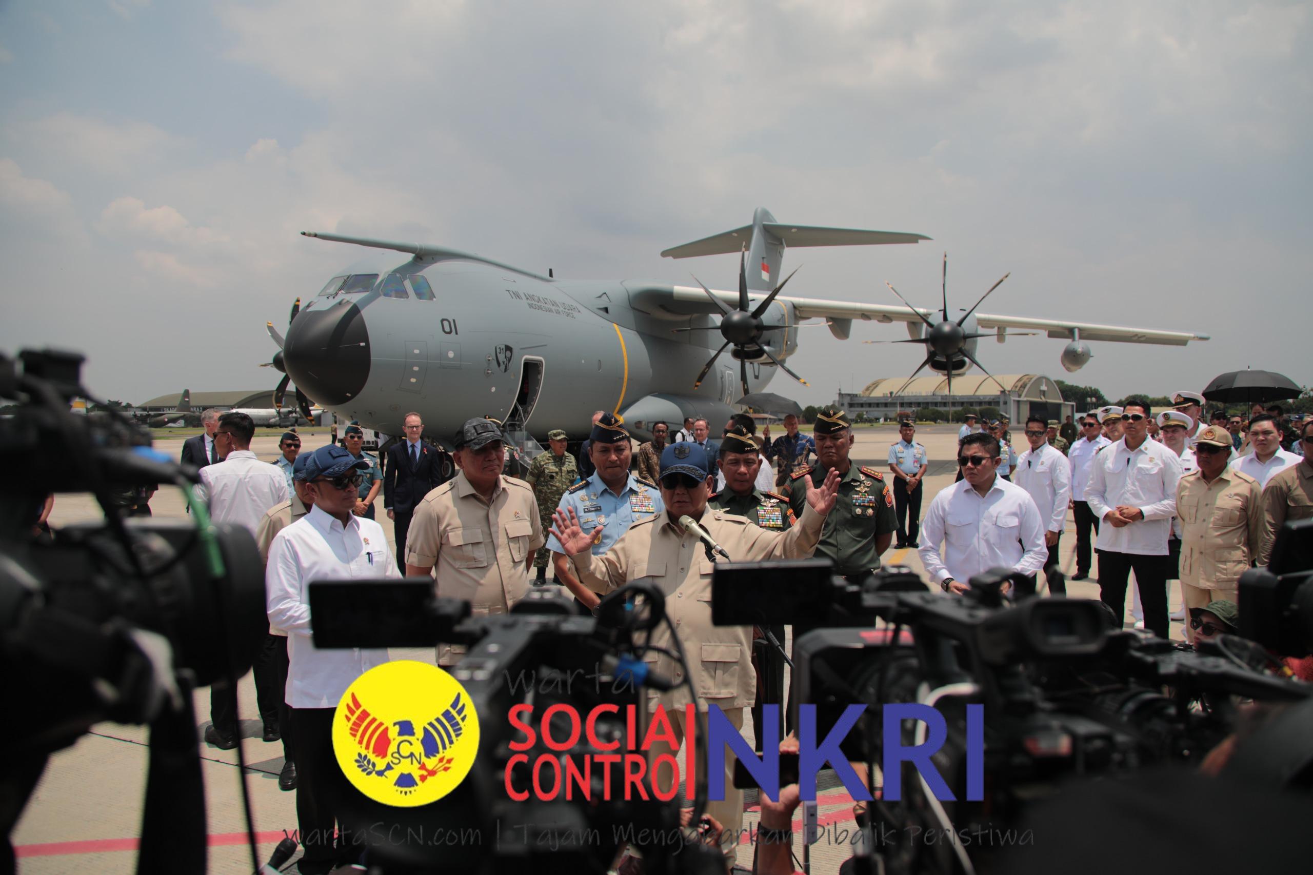 Jakarta — Presiden Republik Indonesia Prabowo Subianto menegaskan komitmen pemerintah dalam memperkuat kemampuan pertahanan udara nasional seiring dengan kedatangan pesawat angkut berat Airbus A400M milik TNI Angkatan Udara (AU) di Pangkalan Udara Halim Perdanakusuma, Jakarta, Senin (3/11).