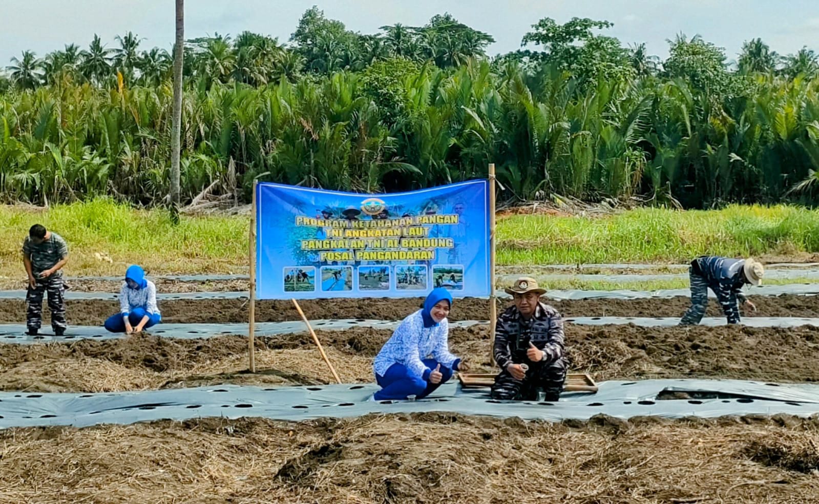 TNI AL, Bandung,- Pangkalan TNI Angkatan Laut (Lanal) Bandung dalam hal ini Pos TNI Angkatan Laut Pangandaran menunjukkan komitmennya dalam mendukung Program Ketahanan Pangan Nasional dengan melaksanakan penanaman ribuan bibit Semangka dan Mentimun di lahan Ketahanan Pangan TNI AL Bandung seluas 1,5 hektar yang terletak di Bojongsalawe, Kecamatan Parigi, Kabupaten Pangandaran, Jumat (09/05/2025).
